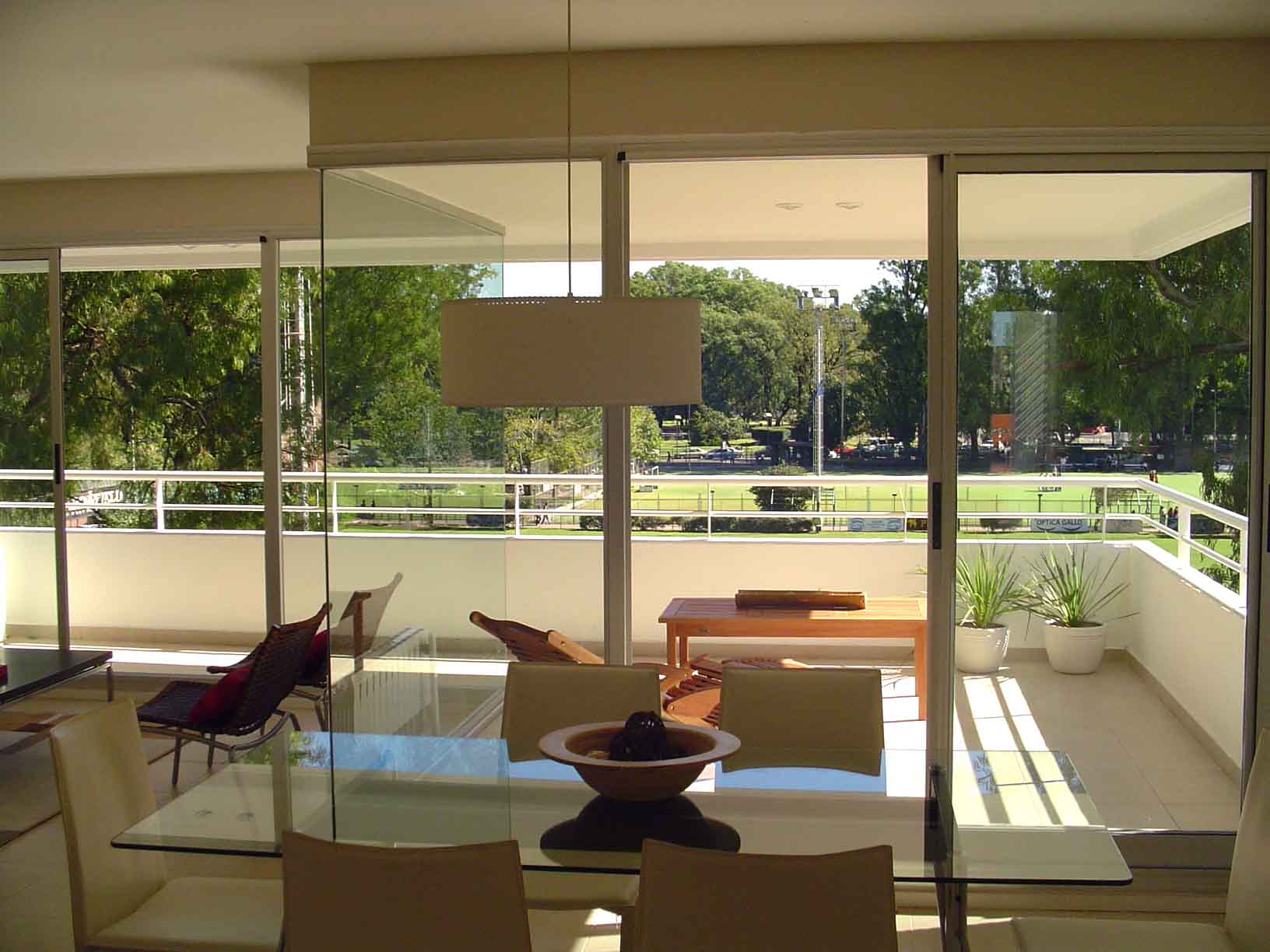 Se proyectó una planta compacta con espacios intermedios que resuelven funciones de servicio (parrillero, lavadero, tender); y de expansión que es la terraza balcón que se encuentra en franca relación con el Parque Independencia para alcanzar la mayor continuidad espacial posible transgrediendo los límites físicos de la caja arquitectónica.