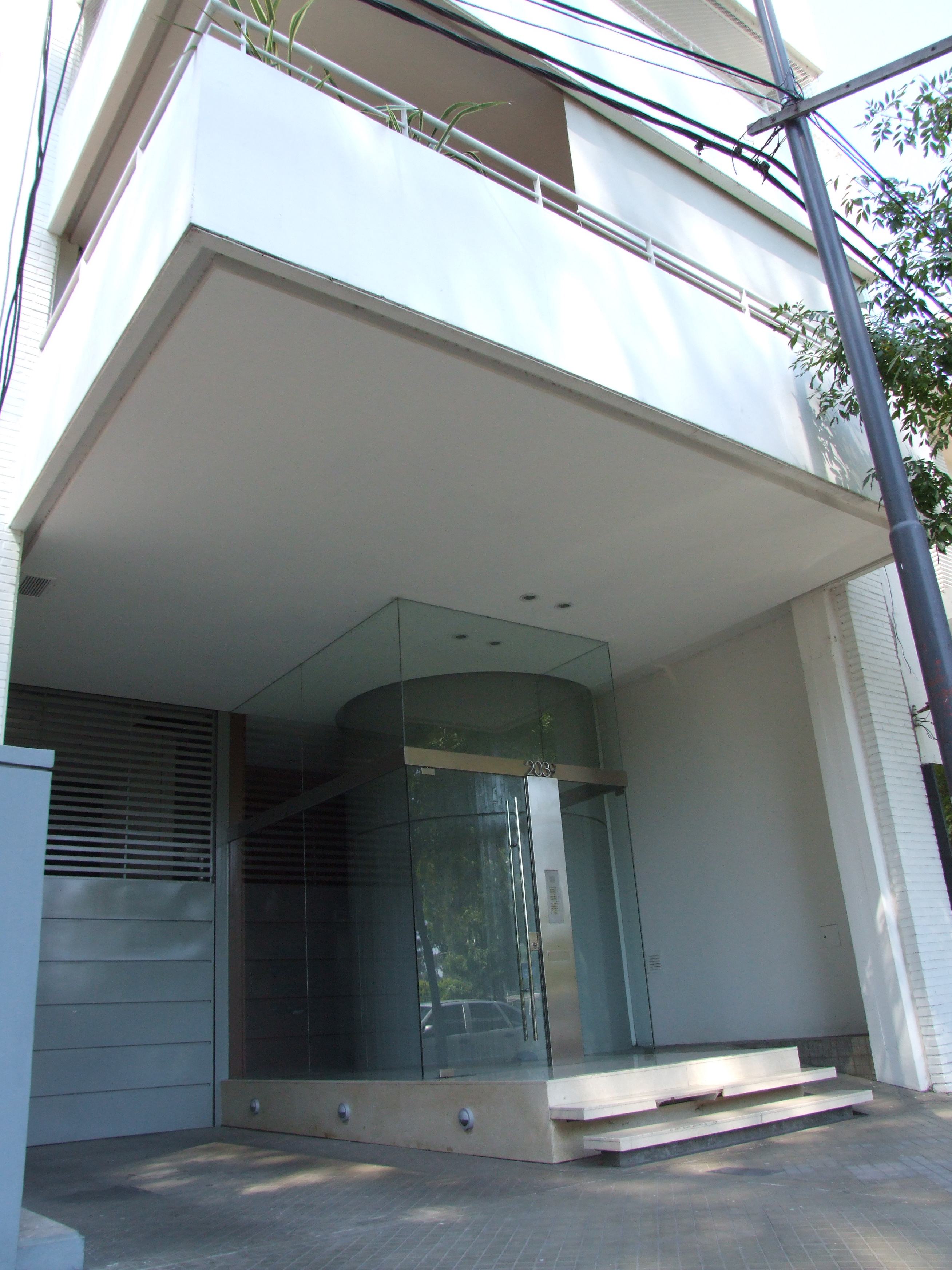 La presencia de una circulación de 3m lindera hacia el Norte, para acceso a lotes internos, permitió resolver un edificio catastralmente entre medianeras, como si fuese en esquina.