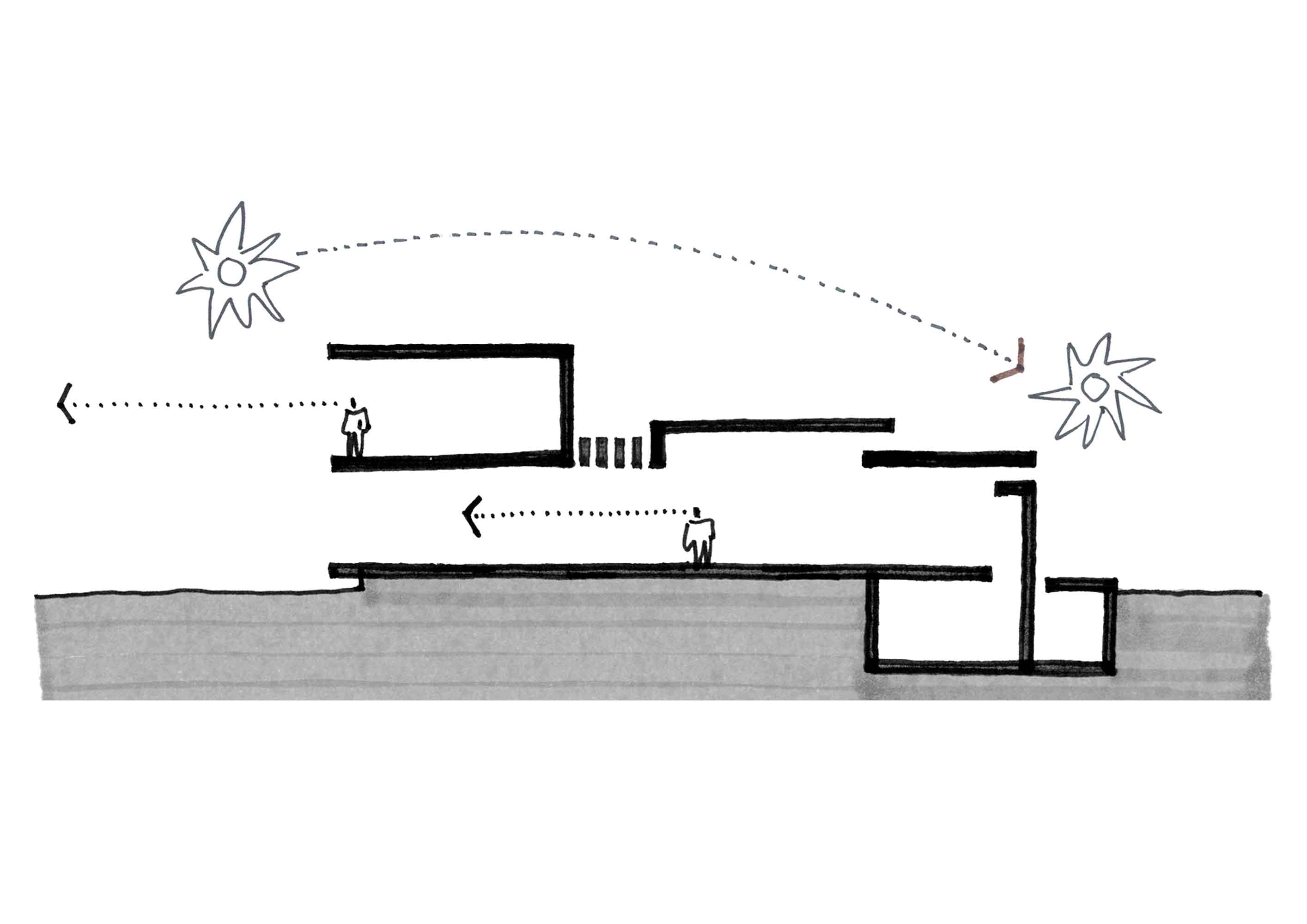 En síntesis, el jardín central permitió interpretar la escala menor del proyecto al definir la relación intrínseca de las partes que componen el programa; mientras tanto, trabajar con el perímetro aislado posibilitó experimentar la escala mayor al moldear la volumetría para captar las visuales profundas y con ello atrapar la inmensidad del horizonte.
