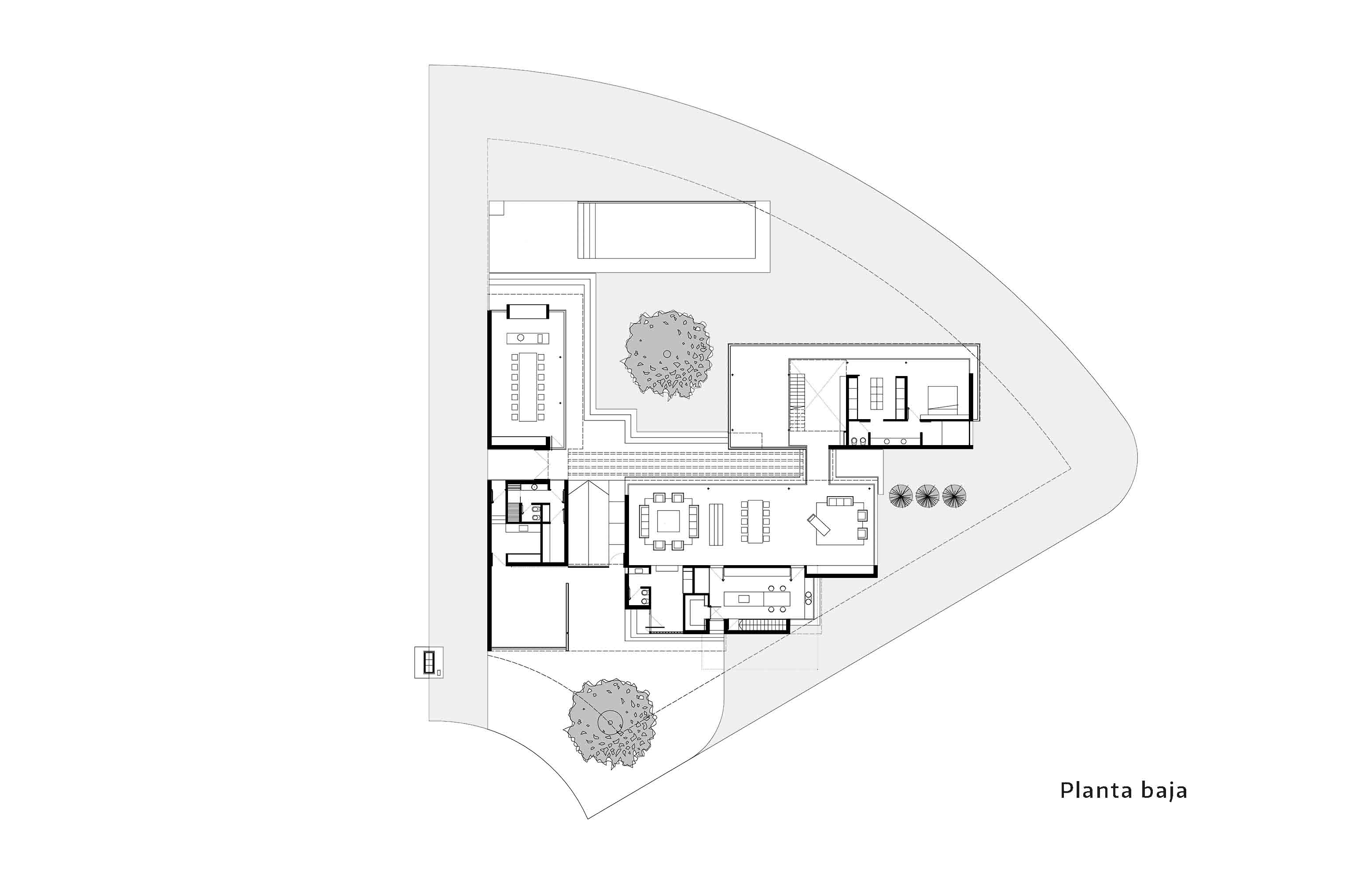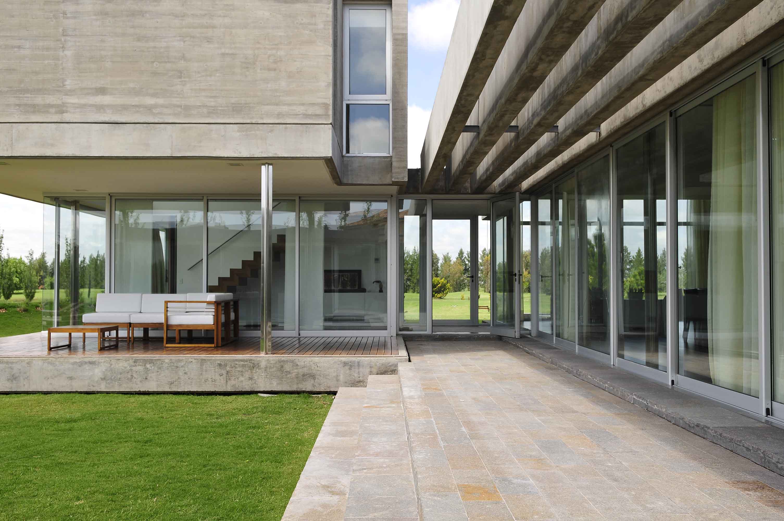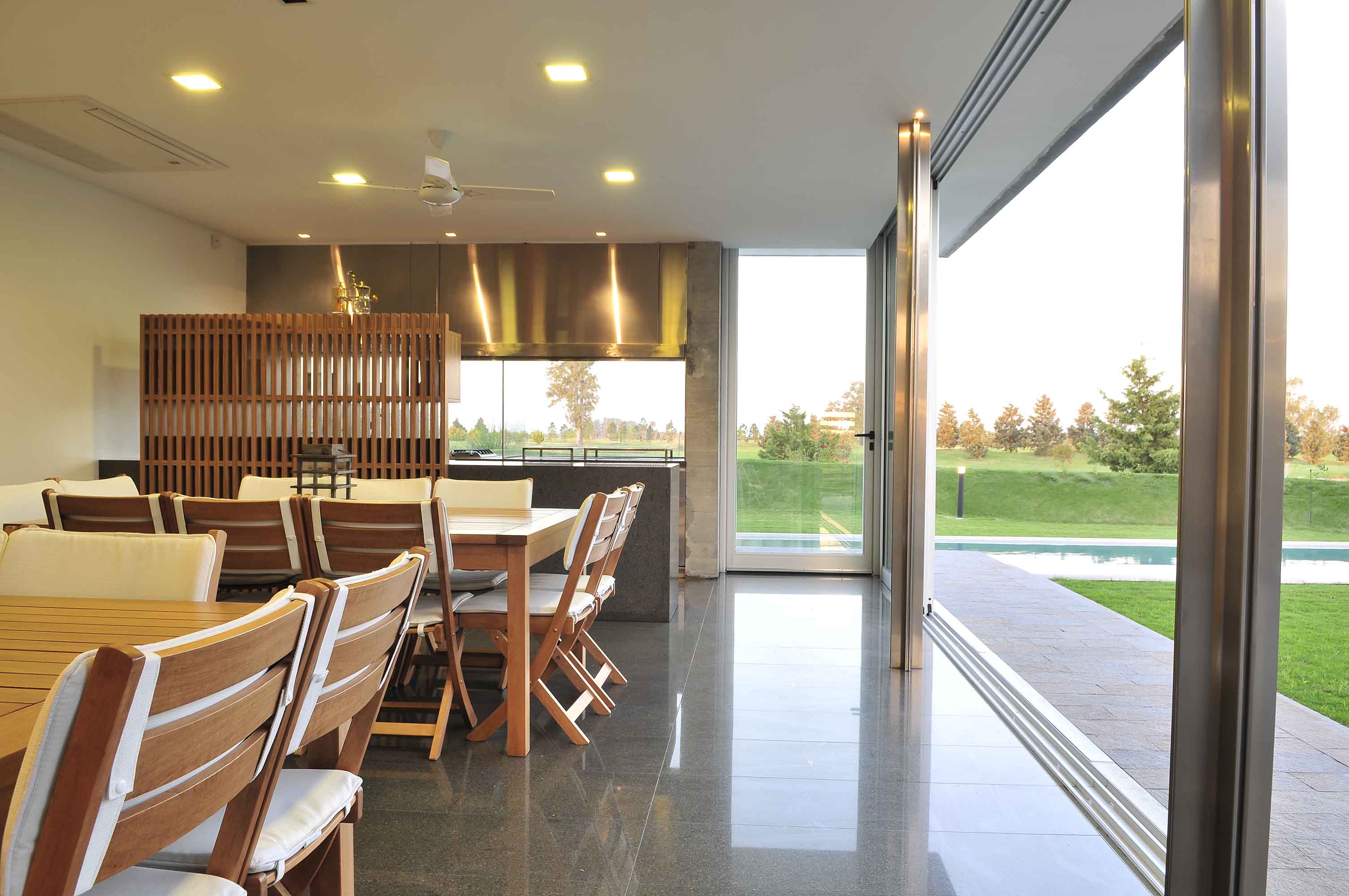 Así, la casa fue pensada como un conjunto de pabellones articulados por un espacio abierto central que posibilitó absorber la forma irregular del terreno y reforzar el vínculo con el paisaje natural a partir de reconocer las atractivas visuales heredadas de su ubicación privilegiada frente al campo de golf del club.