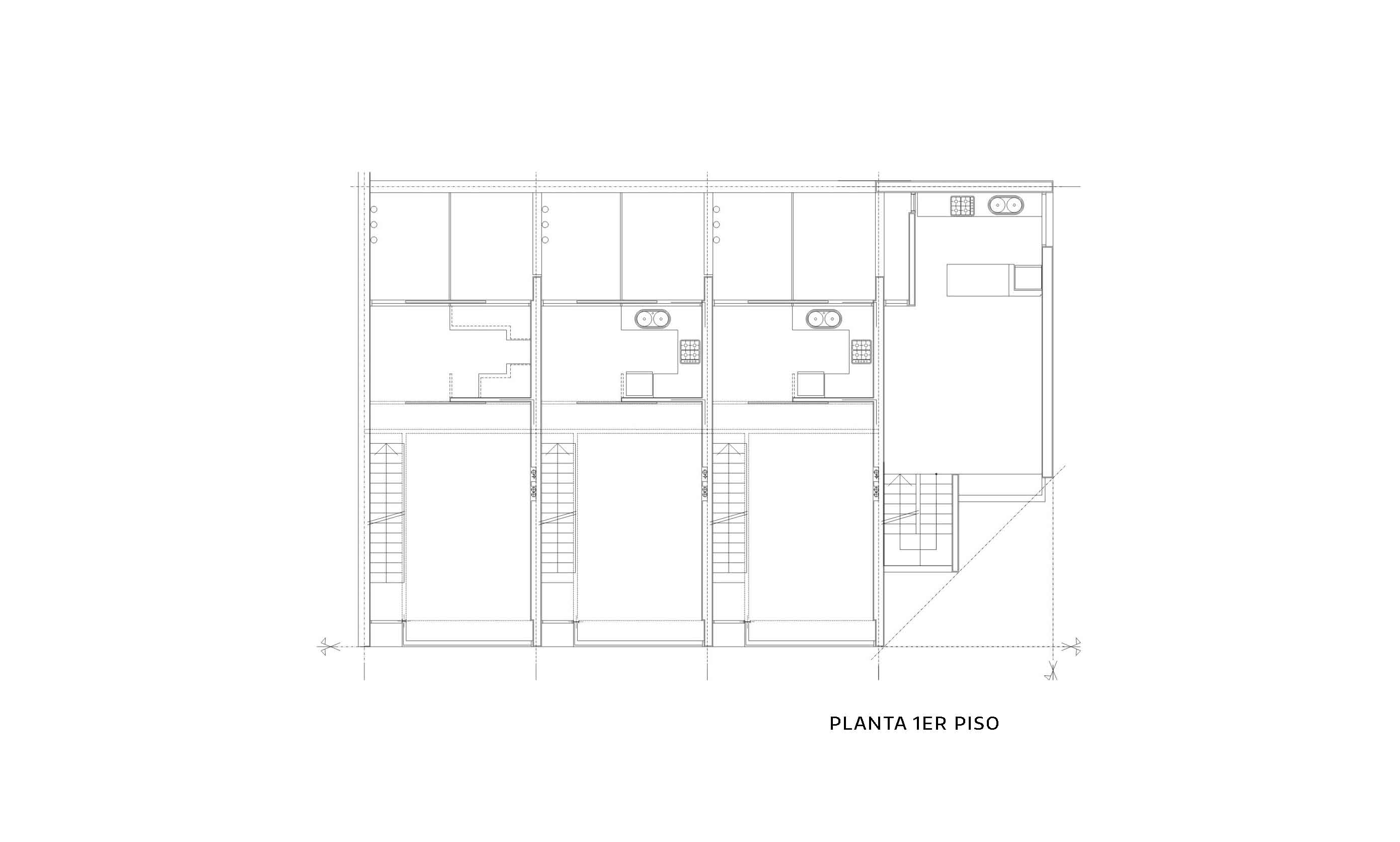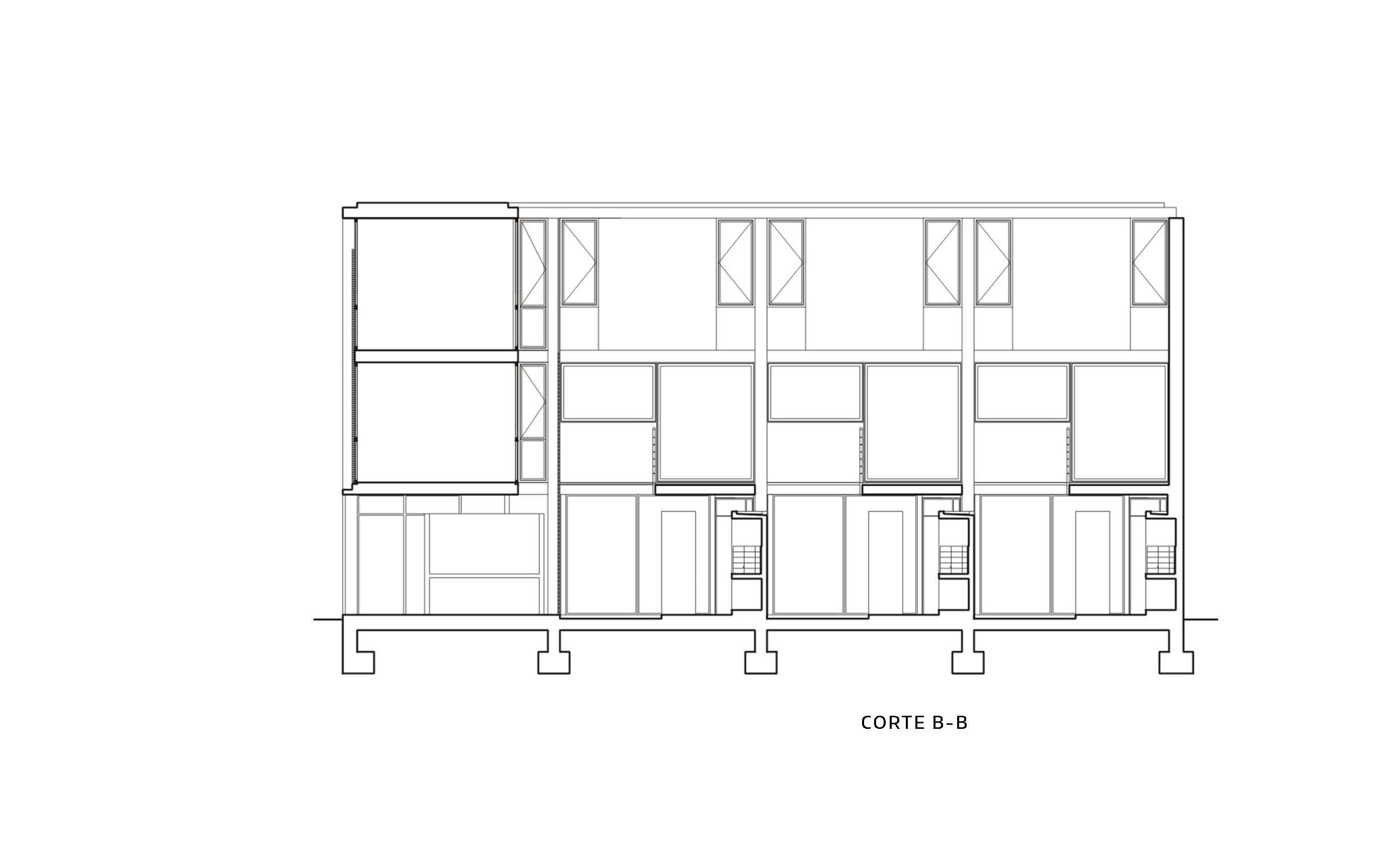 El resultado es un conjunto de cuatro tríplex capaces de ser vividos cada uno como una casa individual con la mayor flexibilidad posible de uso de acuerdo al criterio de planta libre y tabiquería móvil adoptada. Recurso que es empleado pensando en la diversidad de los modos de habitar de los futuros propietarios; puesto que la obra responde a un emprendimiento inmobiliario propio de los autores sin comitentes directos durante la génesis del proyecto.