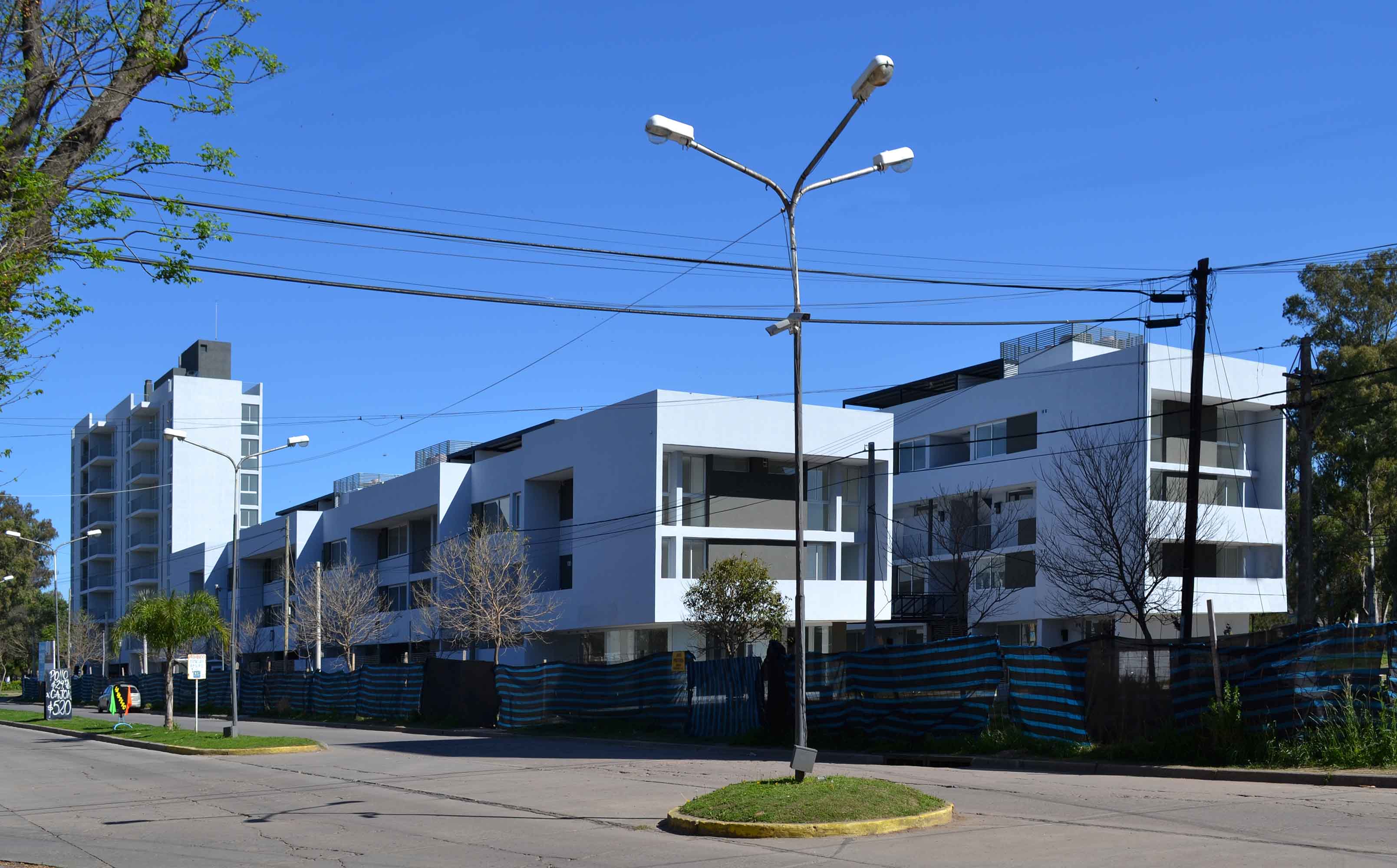 Al respecto, la decisión más significativa fue haber optado por ladrillos huecos cerámicos y revestimientos continuos para la envolvente arquitectónica descartando el ladrillo visto u otro material al desnudo. Inconvenientes en la fabricación y provisión de este último material para obras de escala masiva de acuerdo a experiencias locales padecidas en los últimos tiempos, sumado a la dificultad de obtener mano de obra calificada para su ejecución (máxime por tratarse no solo de construcciones bajas sino también de edificios en altura), llevaron a la elección enunciada precedentemente, convirtiéndose en una alternativa de materialidad de probados y eficaces resultados, aplicada con técnicas constructivas modernas que redundan en una expresión contemporánea.