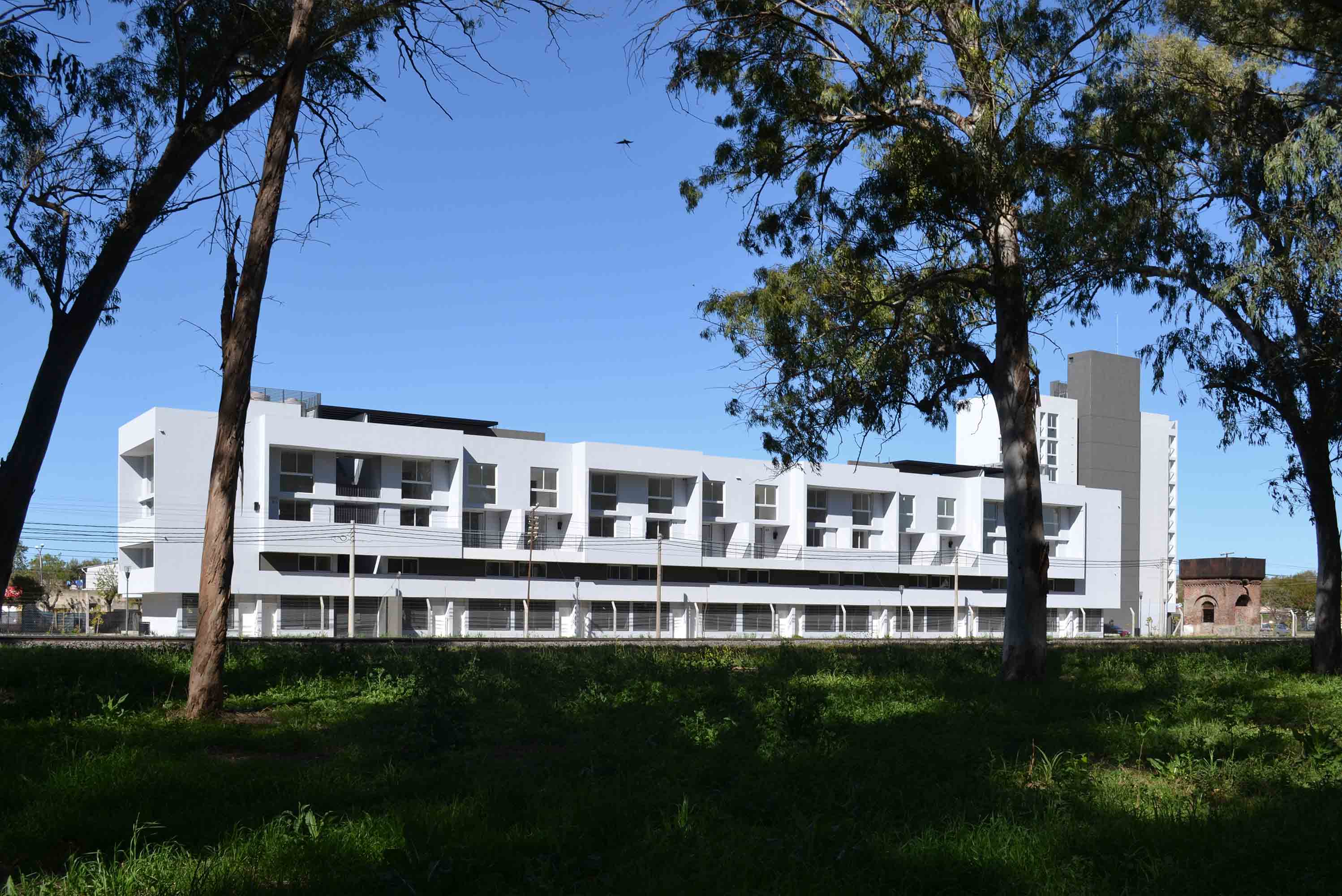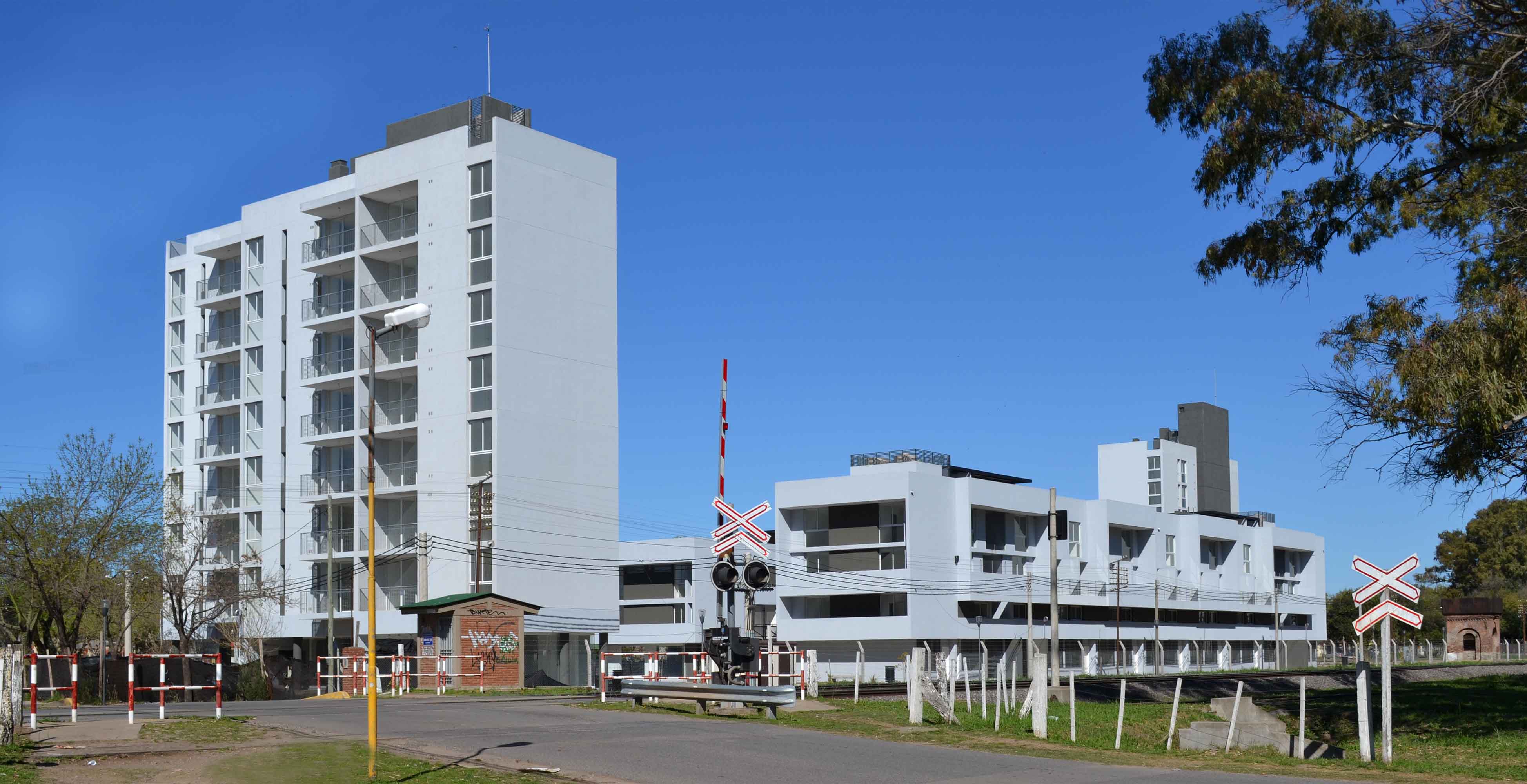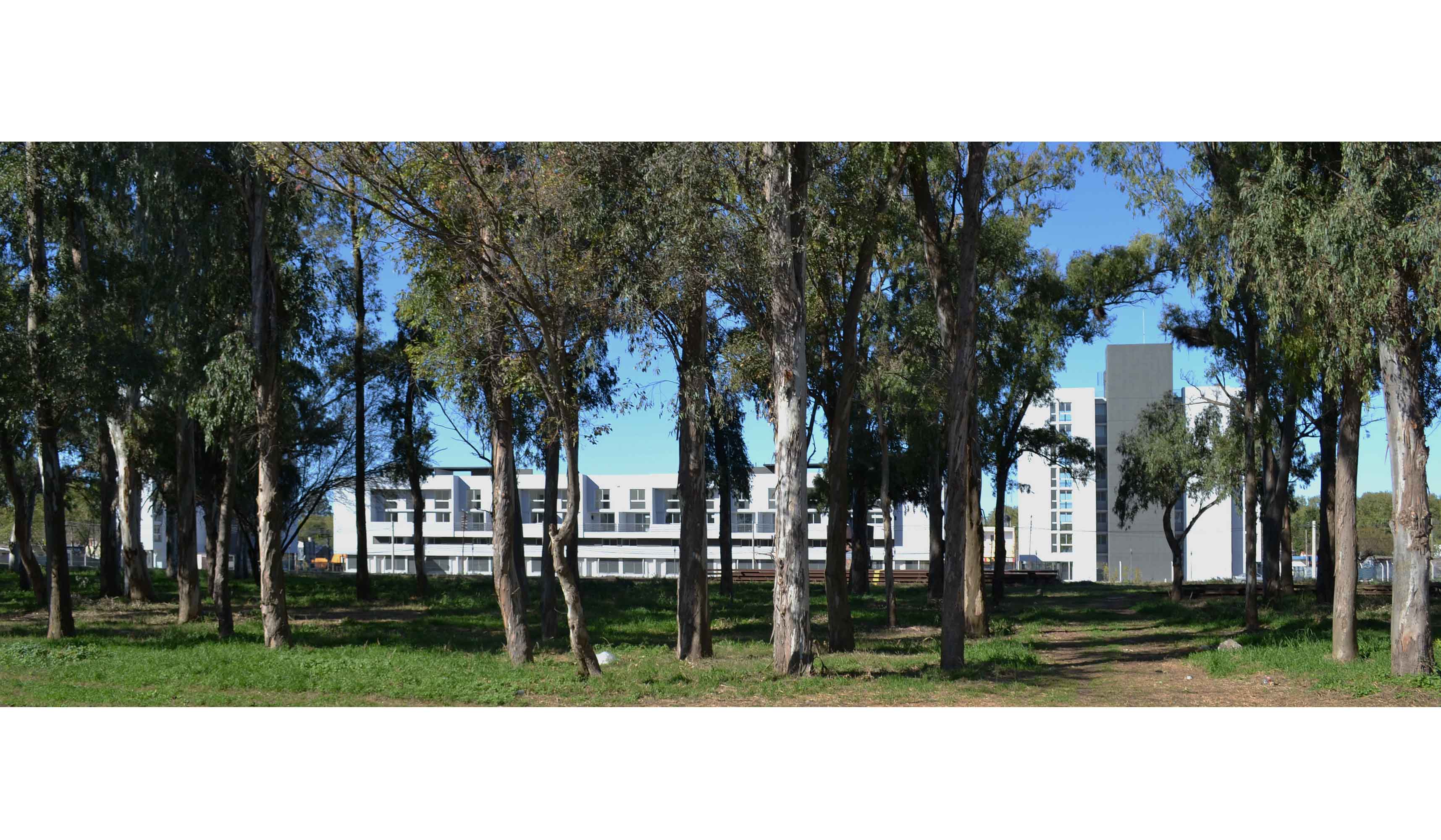 Las vías dividen una ciudad más desarrollada hacia el Este y una menos hacia el Oeste, dejando en el medio grandes lonjas verdes con la presencia de antiguas edificaciones aisladas, algunas adaptadas a nuevos usos como la vieja estación, una añosa arboleda que identifica el sector y un entorno residencial ambiguo de baja altura conviviendo con equipamientos industriales de gran escala como lo es la planta de John Deere. En síntesis, “un lugar con identidad propia”, que intentamos intervenir con alta calidad ambiental respetando los principales lineamientos proyectuales enunciados en las bases del concurso; a saber: