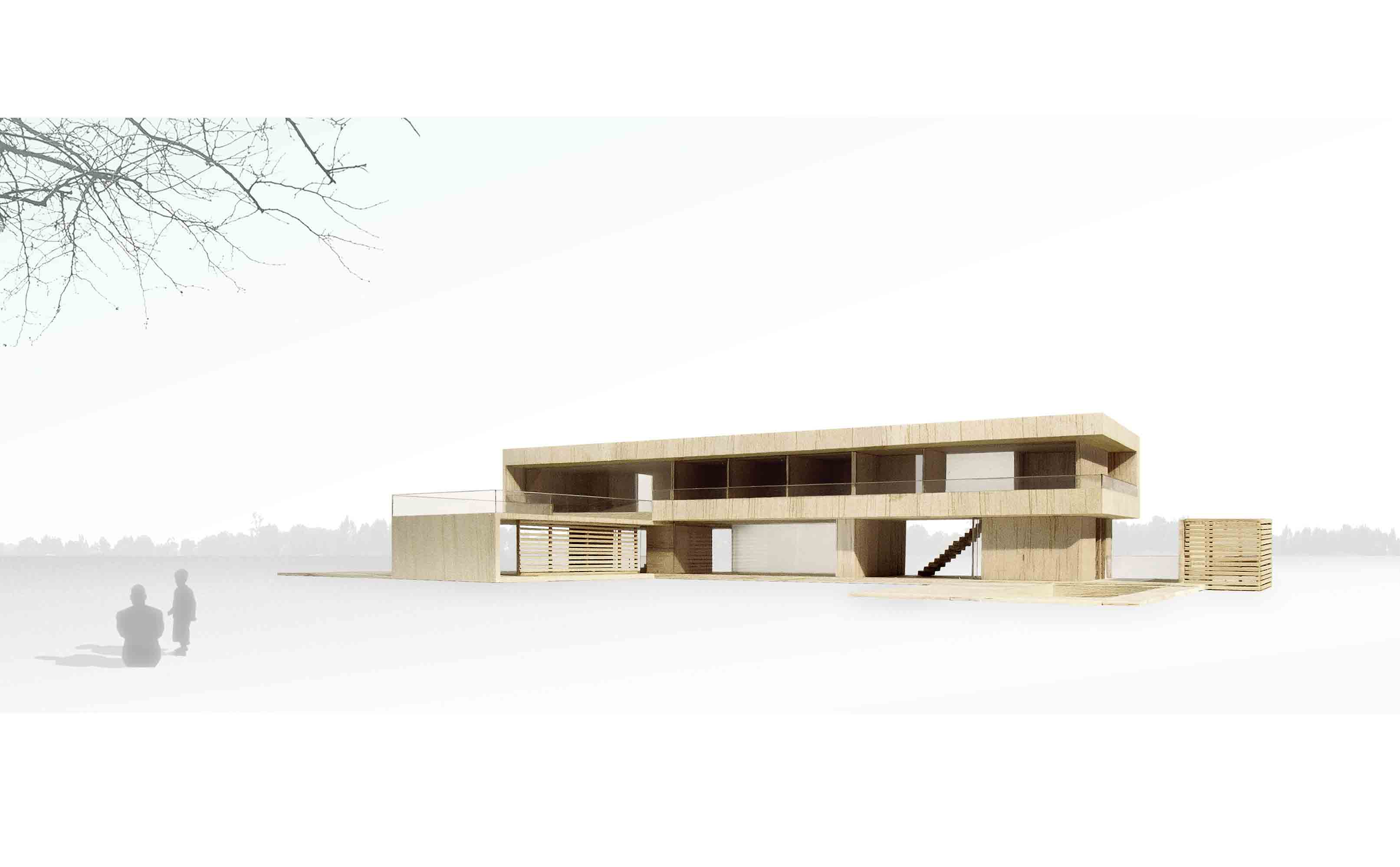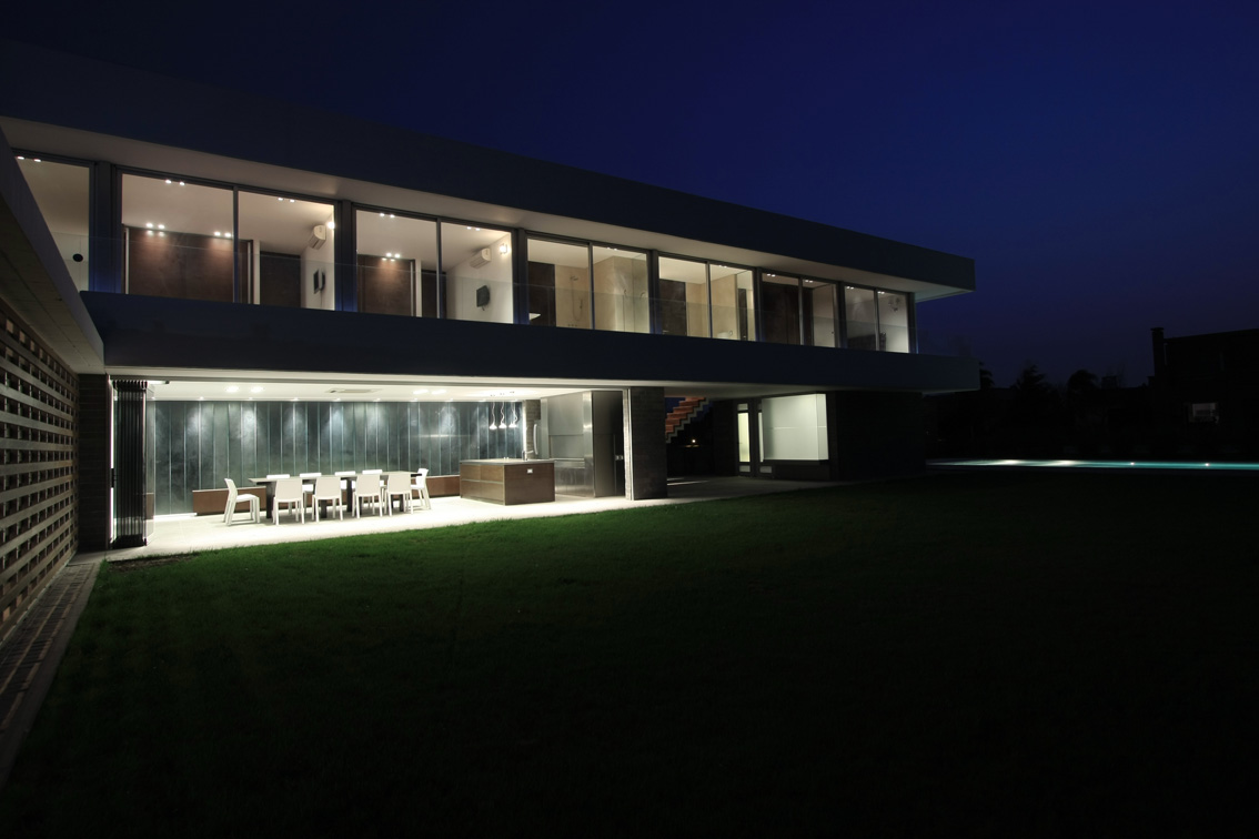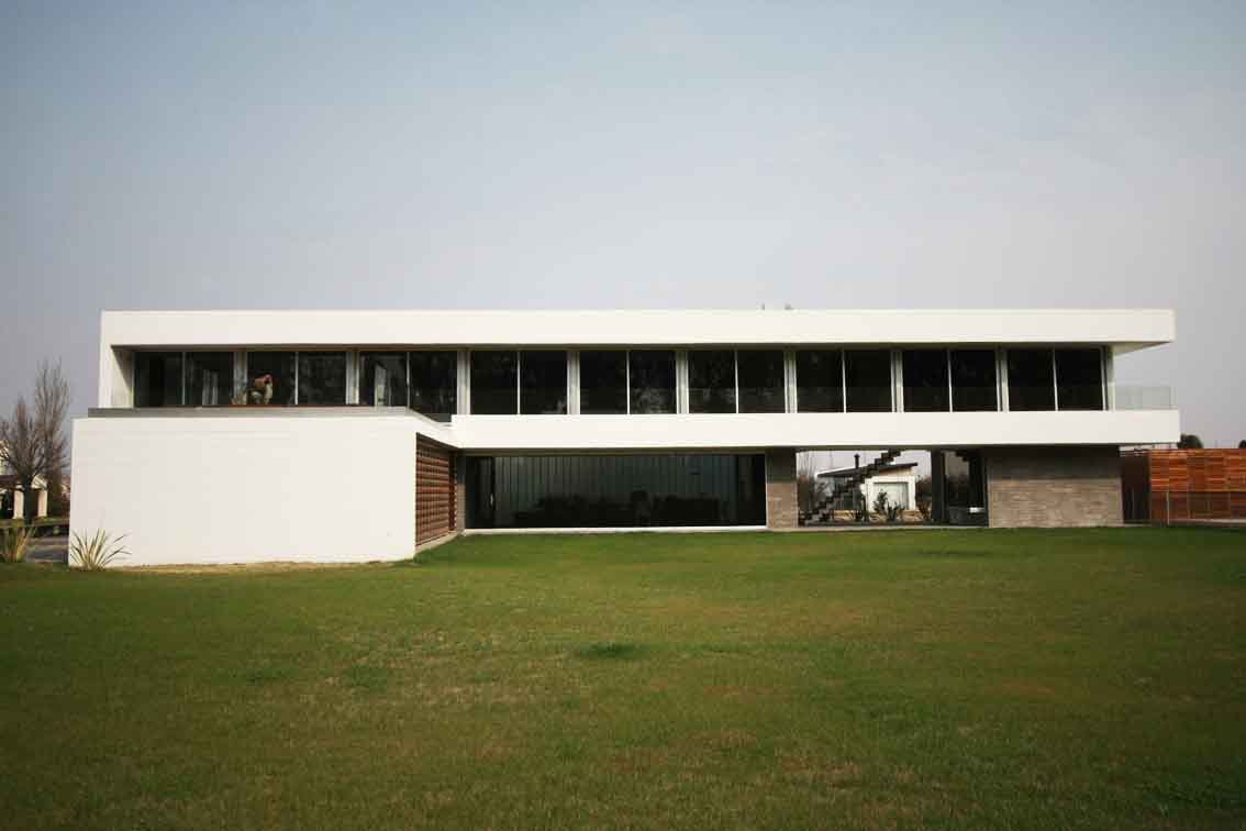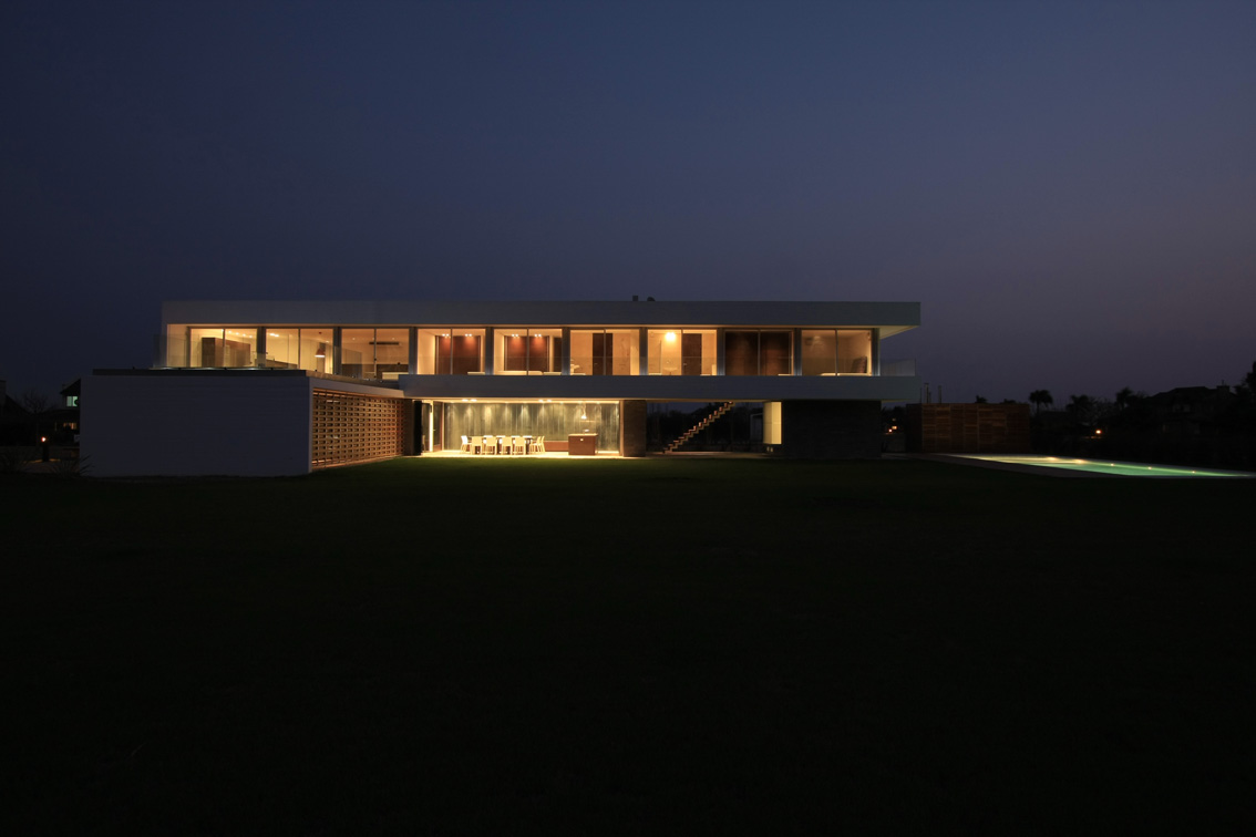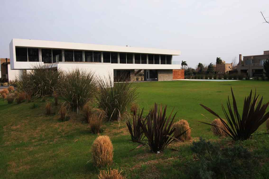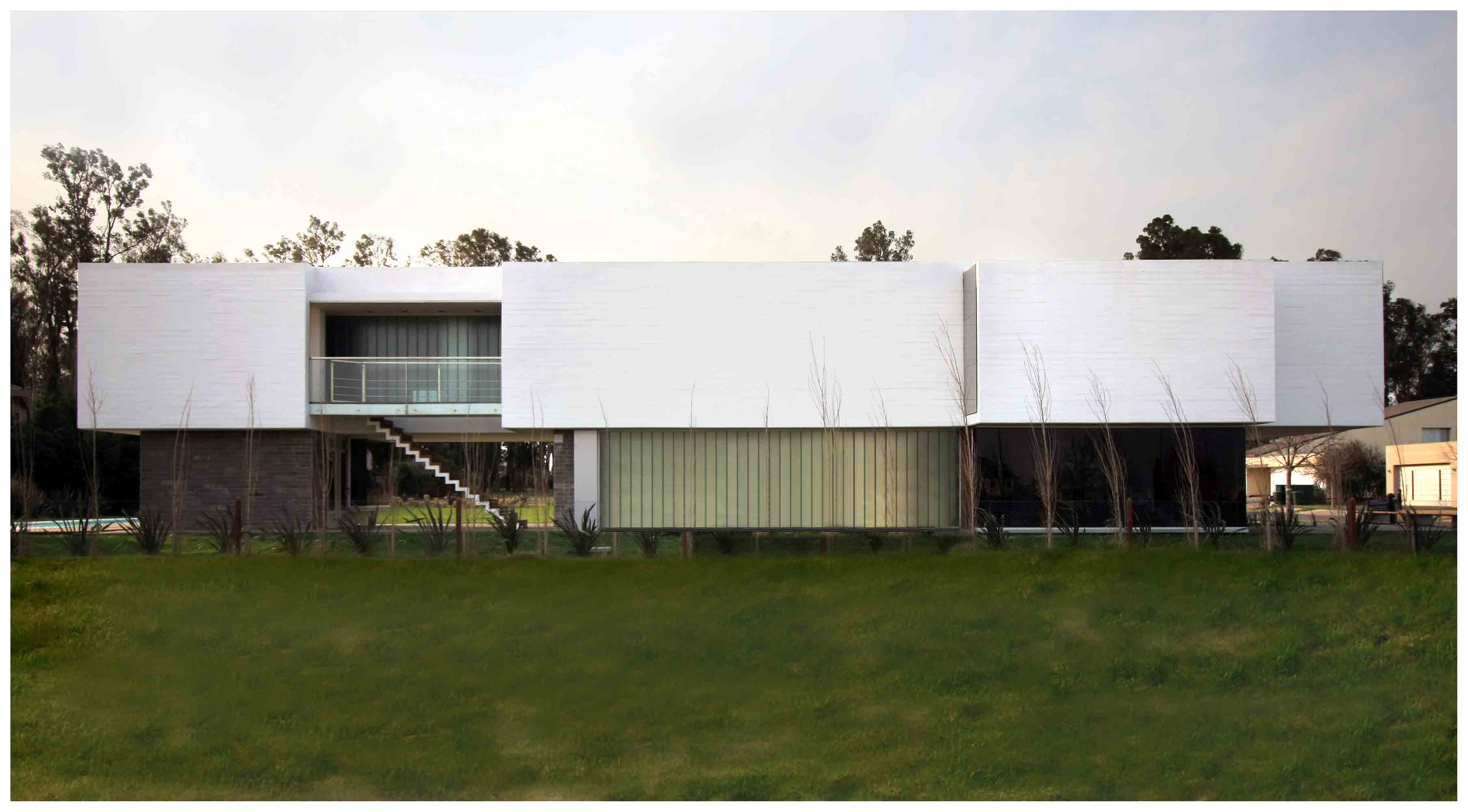 La estrategia de ubicar la vivienda en un solo lote de los dos que integraban el terreno ubicado dentro de un club de campo del litoral argentino, la forma alargada de la parcela individual y el uso alternativo de la casa entre fines de semana y temporada de verano, condicionaron fuertemente la morfología, los volúmenes y la organización de los espacios interiores de la casa proyectada para un matrimonio con dos hijas pequeñas.
