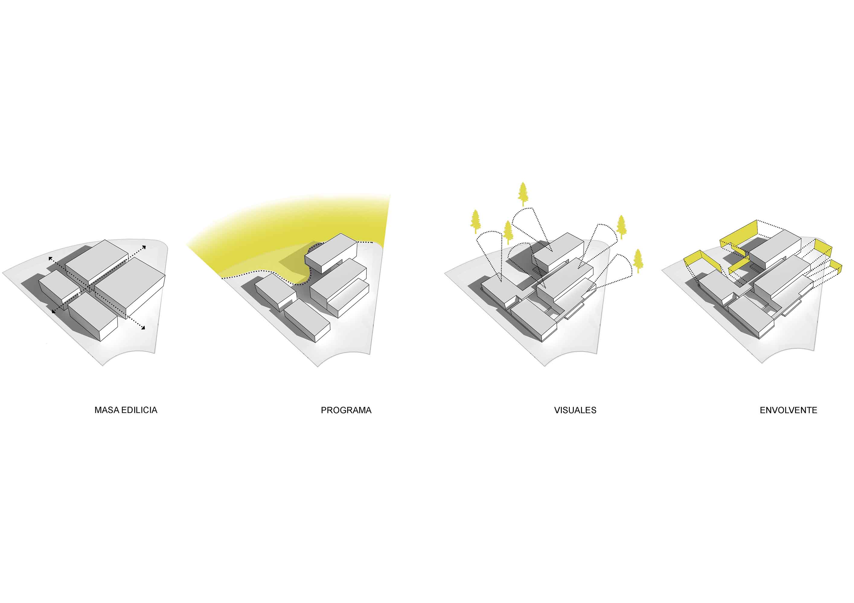 En síntesis, el jardín central permitió interpretar la escala menor del proyecto al definir la relación intrínseca de las partes que componen el programa; mientras tanto, trabajar con el perímetro aislado posibilitó experimentar la escala mayor al moldear la volumetría para captar las visuales profundas y con ello atrapar la inmensidad del horizonte.