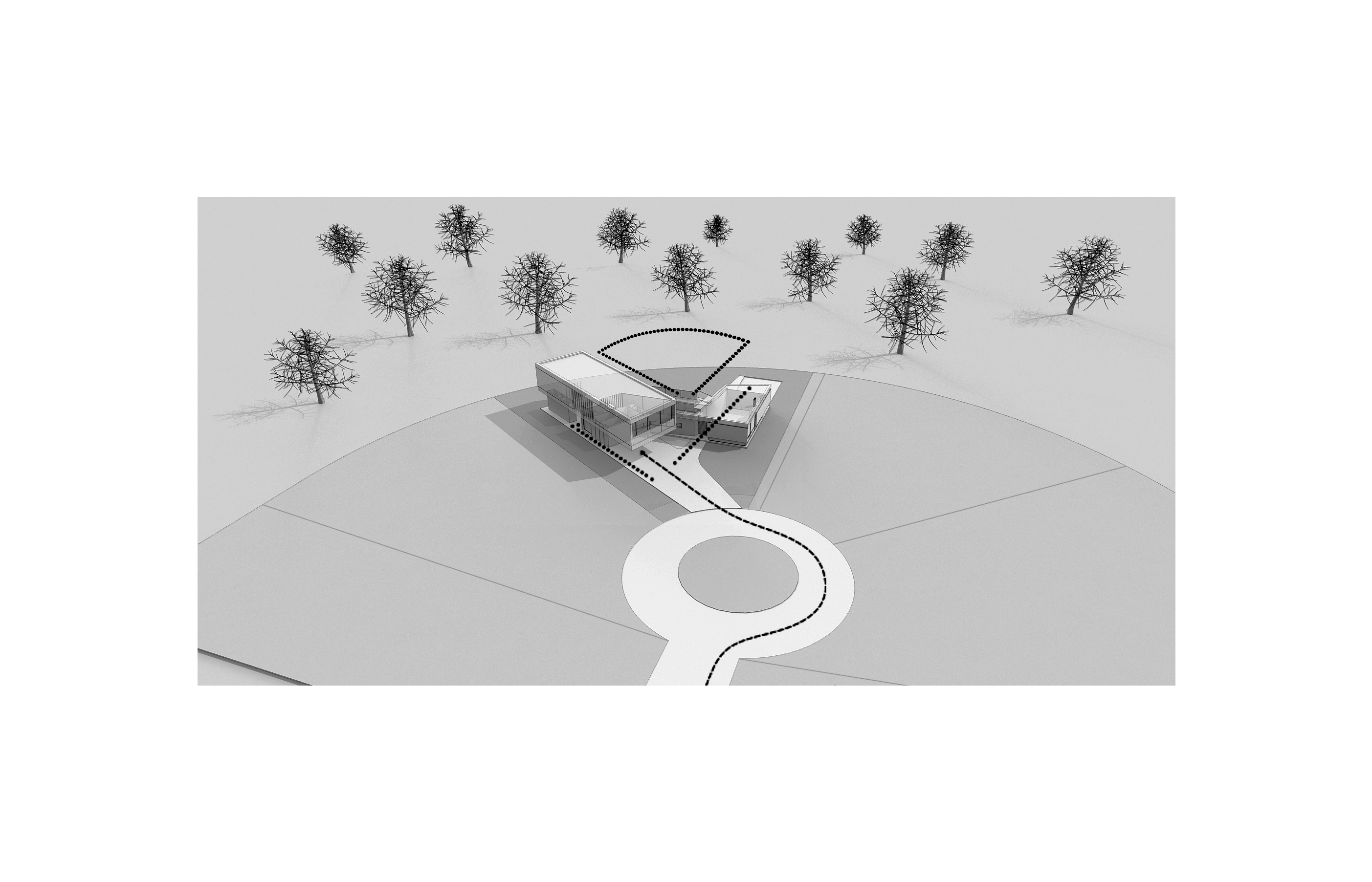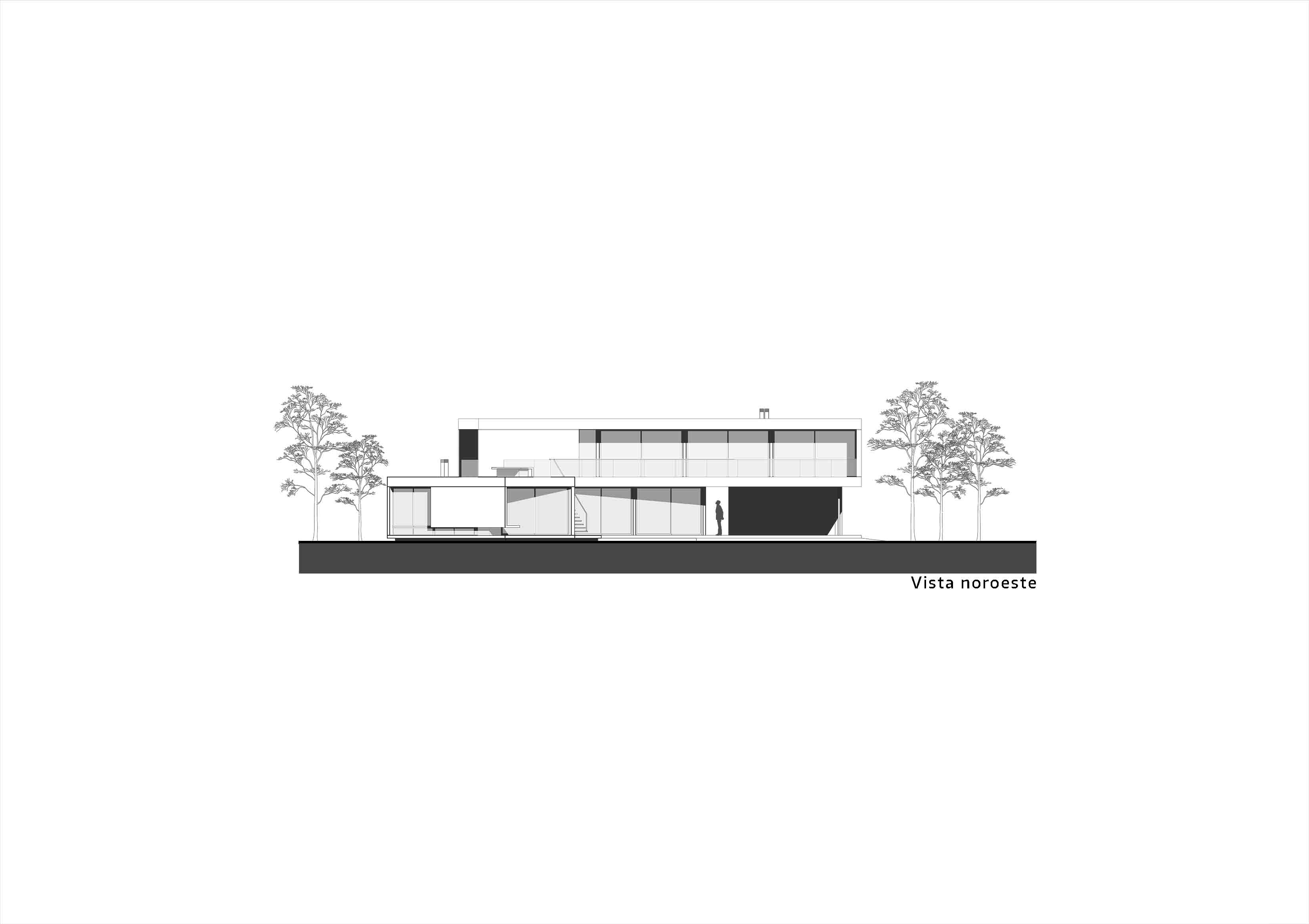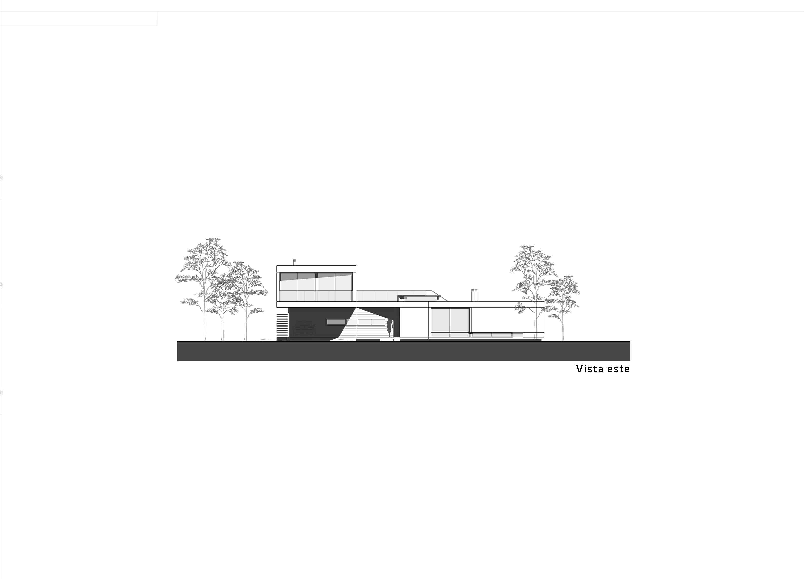 Coherente con la idea de generar paisaje, unirse al verde preexistente y crear así una relación antagónica entre frente-calle y contra frente-naturaleza. Aparece el encuentro entre la pesadez de las materialidades fuertes como el hormigón y la liviandad del diseño. Por ello, numerosos muros no llegan a encontrarse con el suelo y el cuerpo de planta alta aparece suspendido con un importante voladizo.