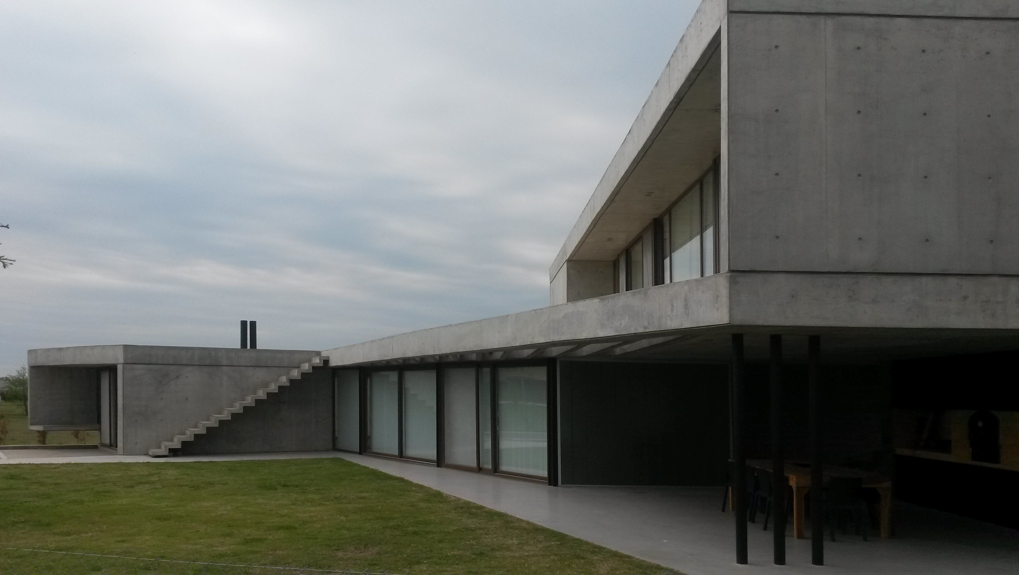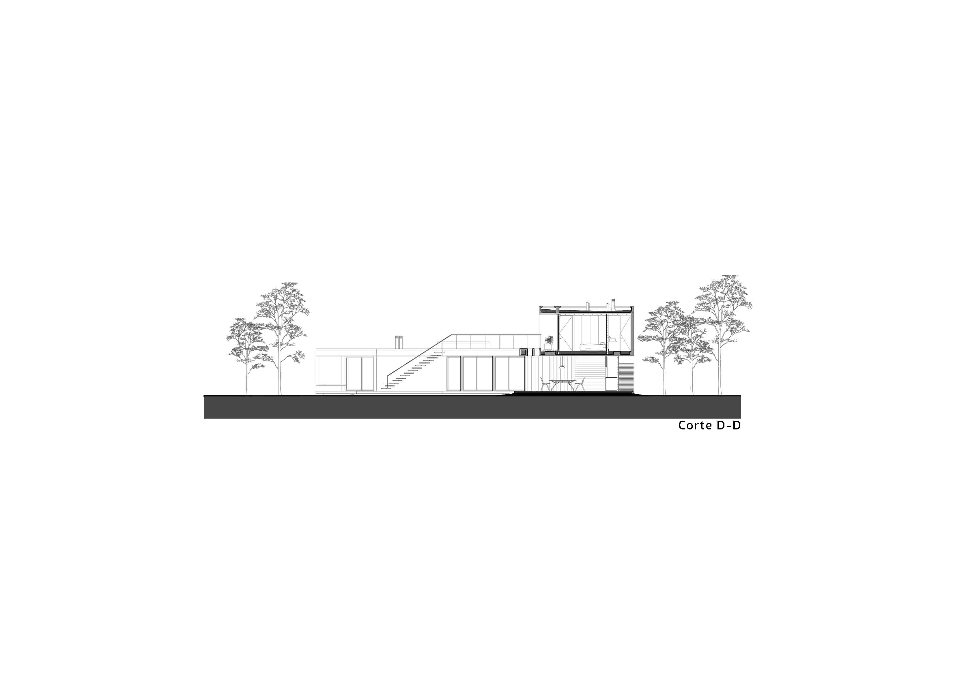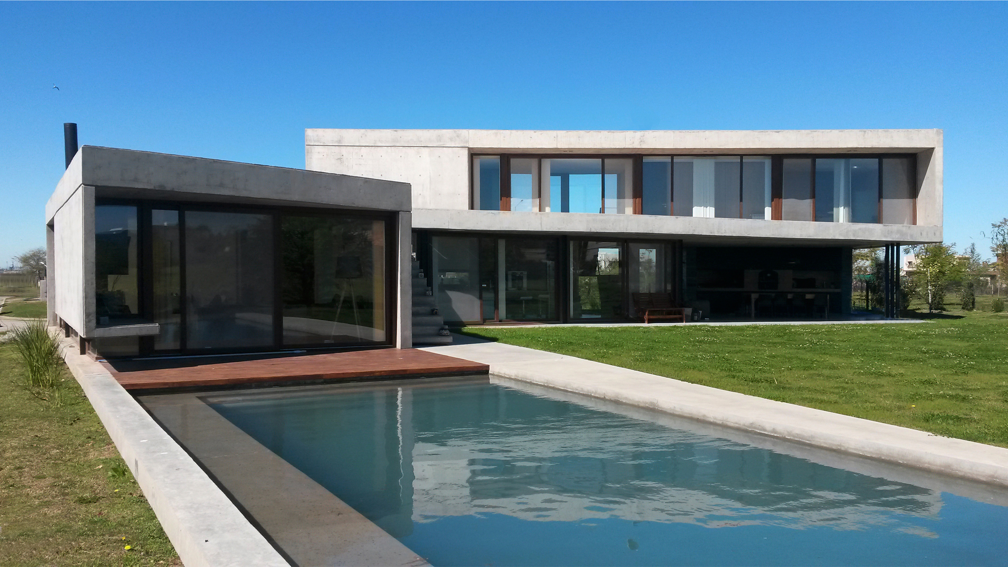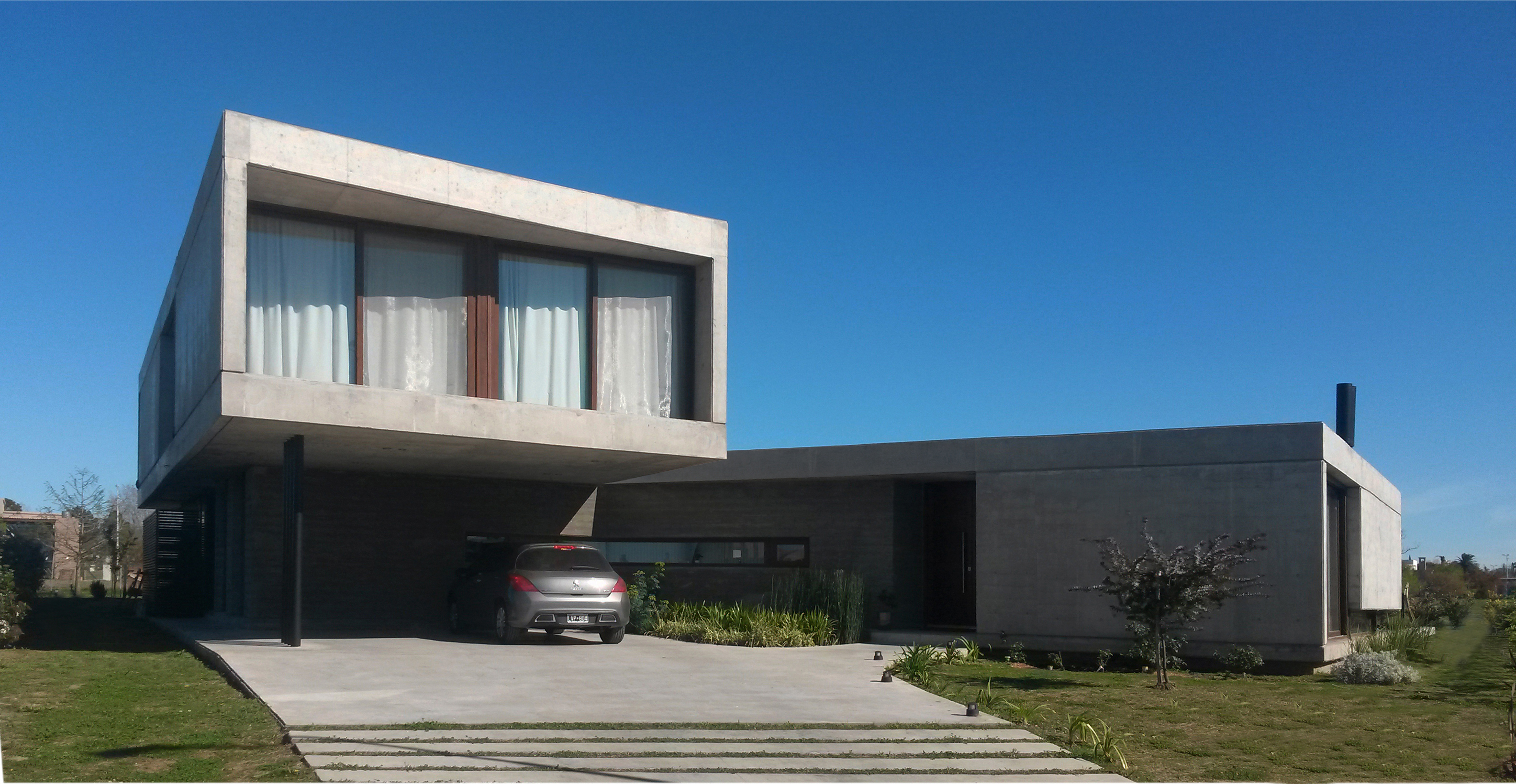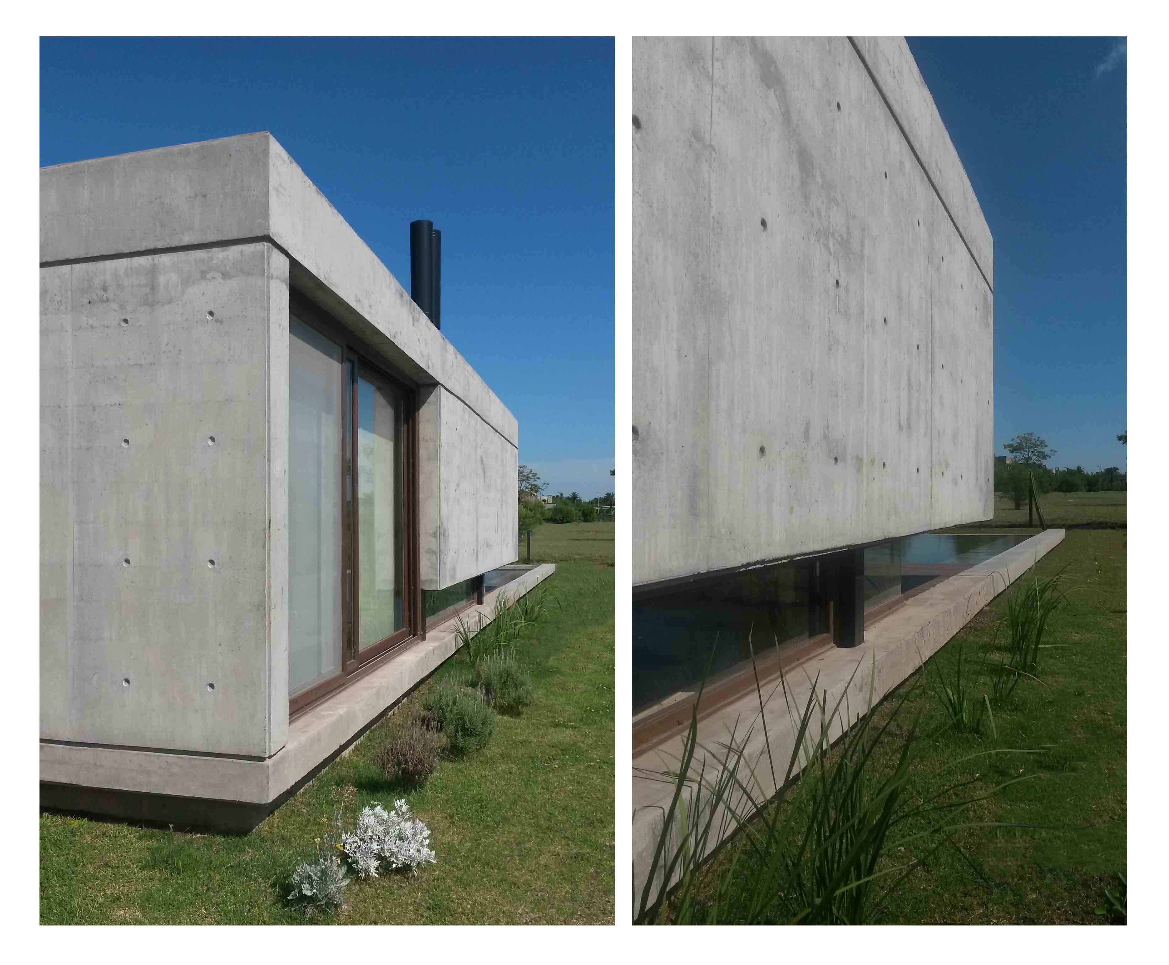 Para alcanzar esta pretendida continuidad entre interior y exterior el vidrio es el otro material excluyente de la envolvente del proyecto. En cuanto al programa, el mismo se organizó en dos niveles, determinando el sector de dormitorios en la planta alta para obtener mayor privacidad pero sin desatender el paisaje ya que a través de la terraza jardín se relaciona con el verde del exterior. En planta baja si bien cada área funcional es facilmente identificable la continuidad espacial nunca altera la idea de totalidad; en tanto que la síntesis de los materiales colabora con la actitud univoca hormigón visto en la mayoría de pisos, muros y cielo rasos, madera en el mobiliario empotrado y carpinterias de PVC de piso a techo con doble vidriado.