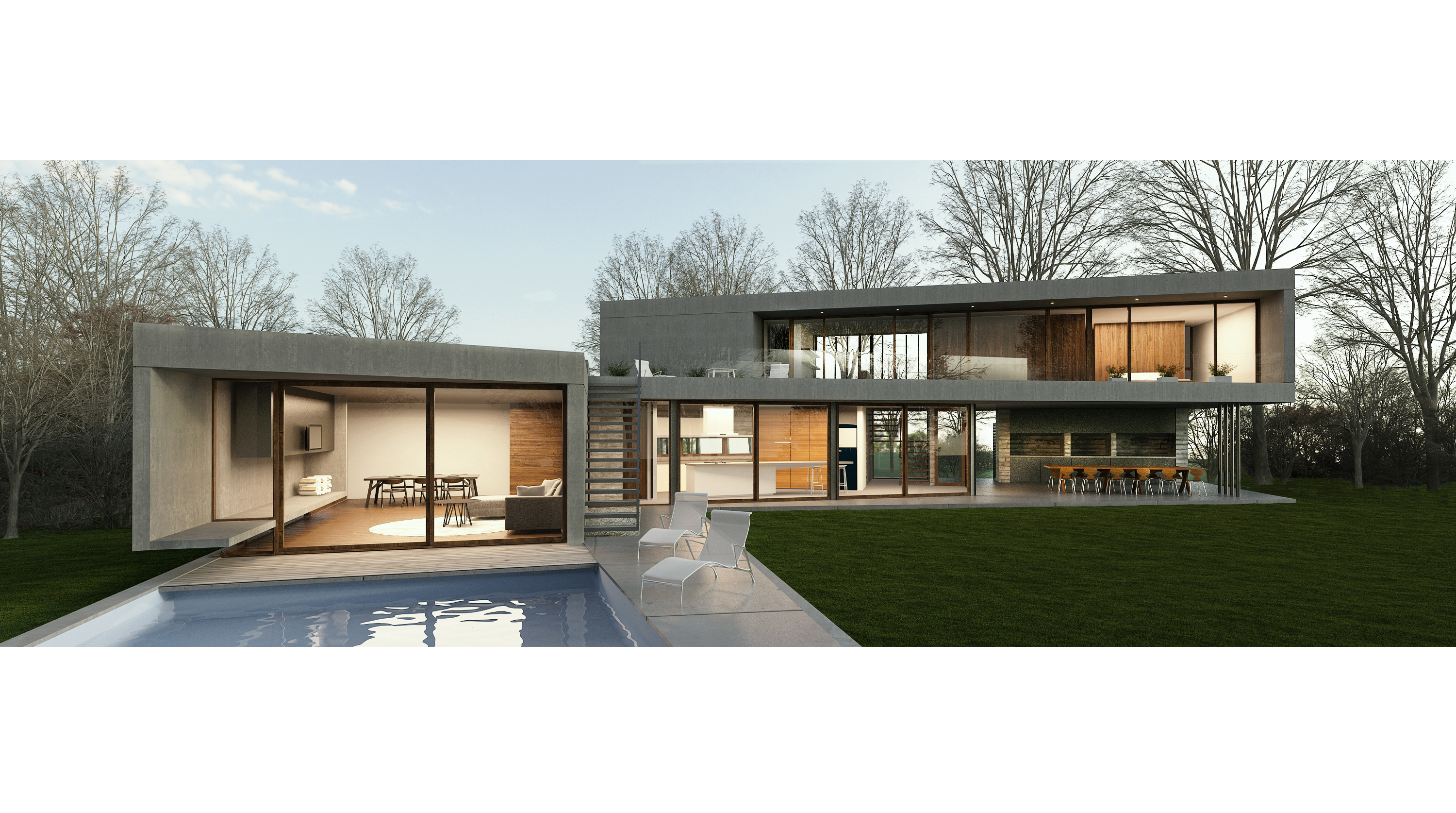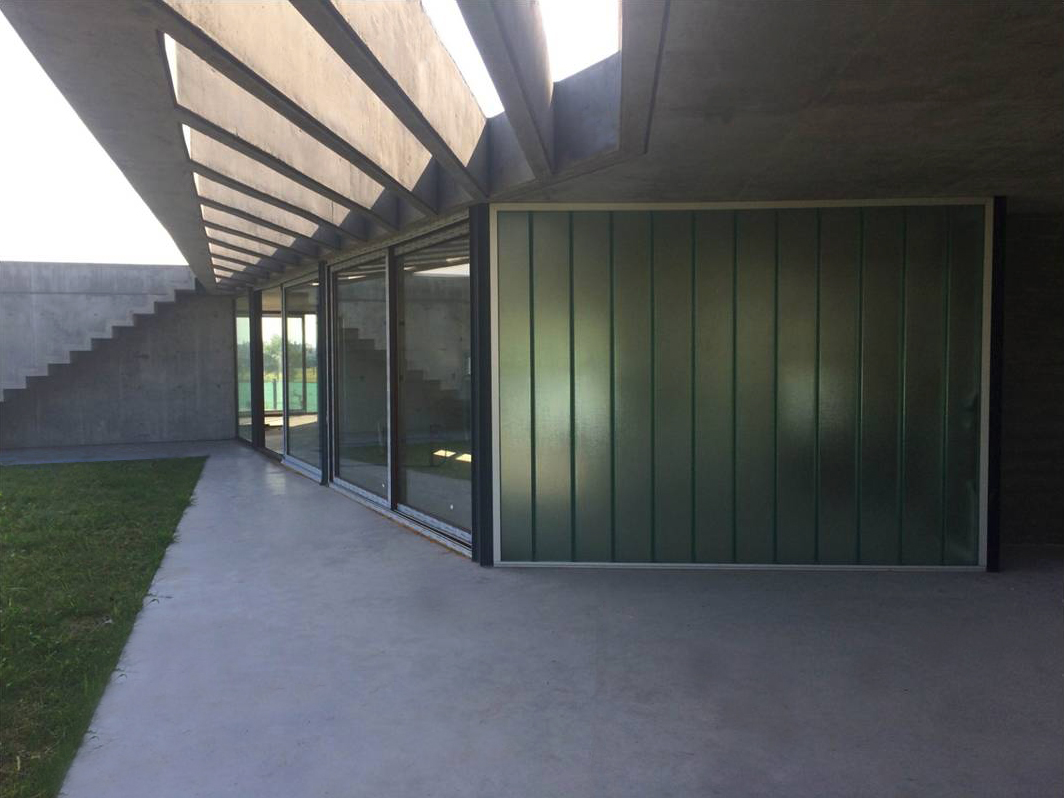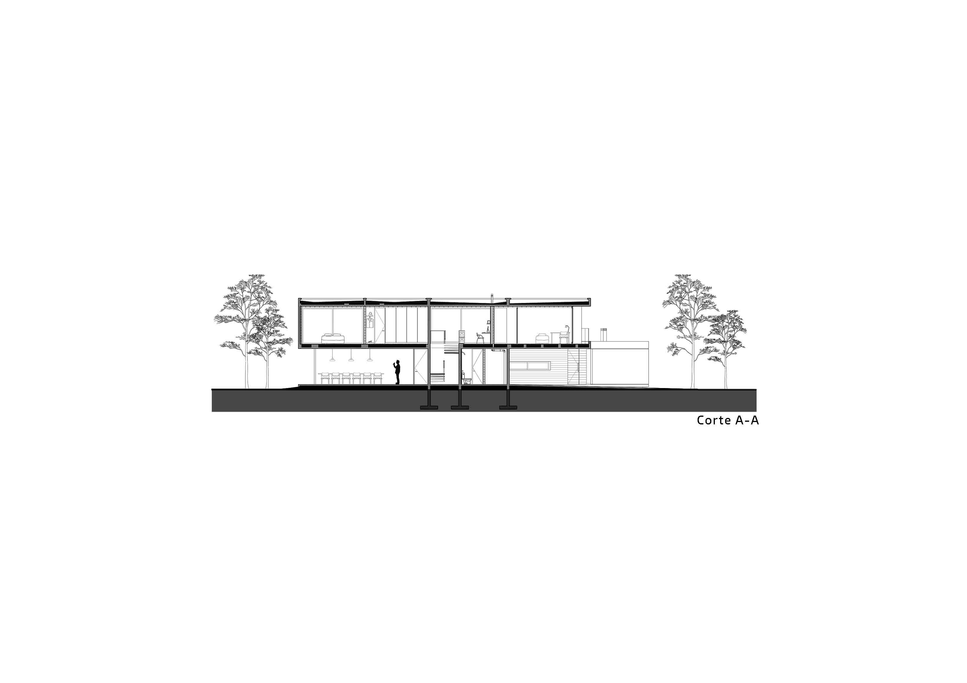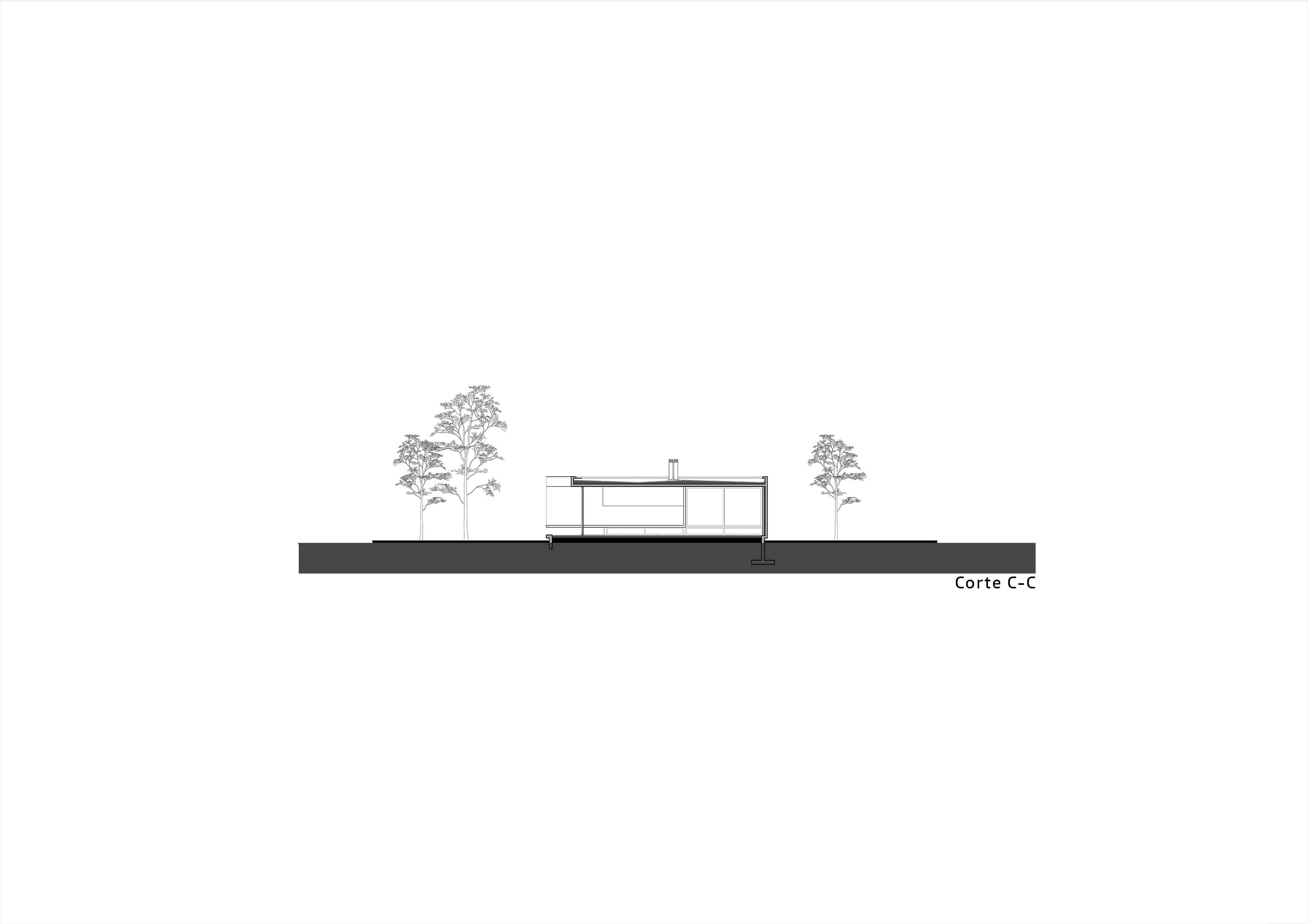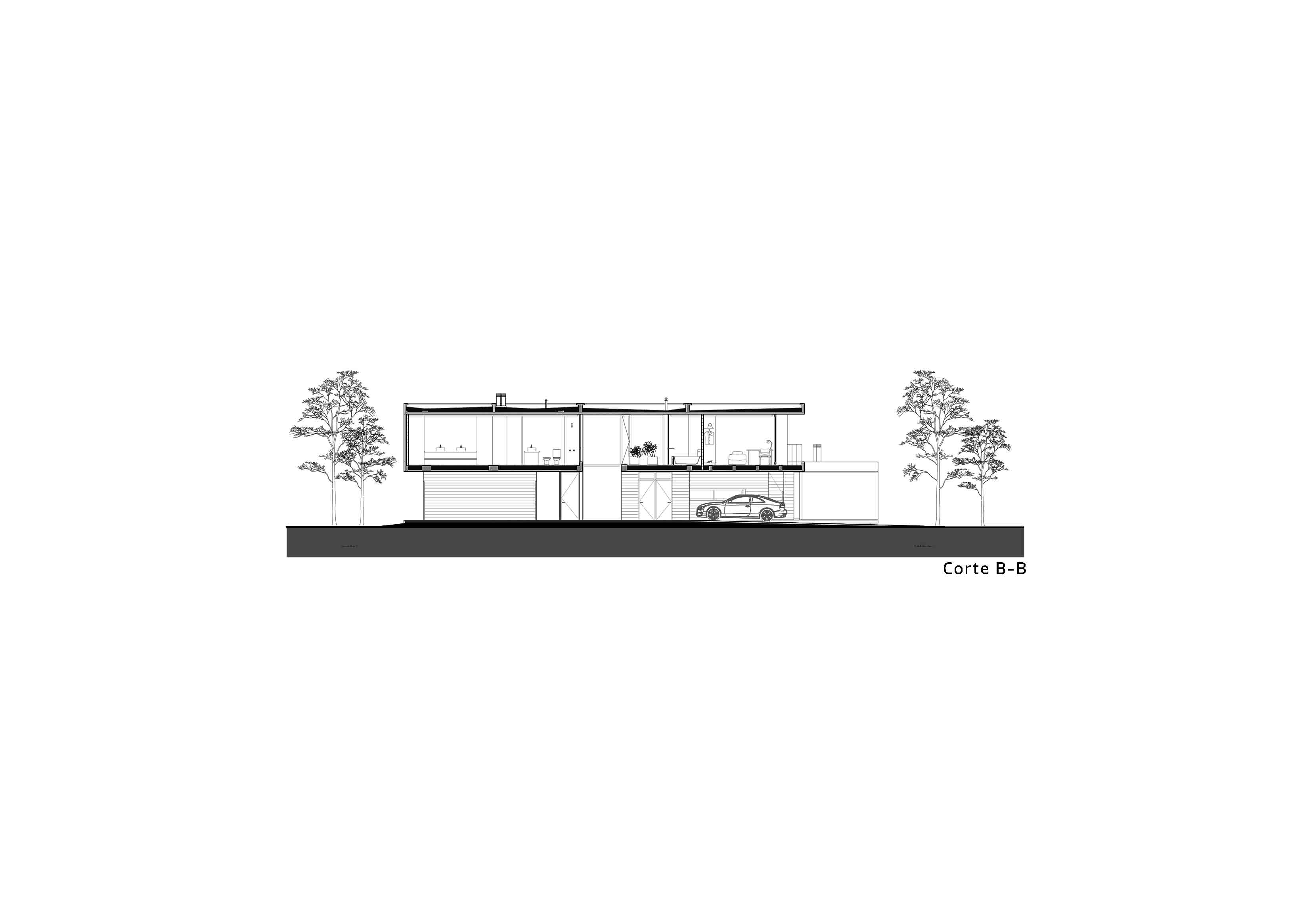 Para alcanzar esta pretendida continuidad entre interior y exterior el vidrio es el otro material excluyente de la envolvente del proyecto. En cuanto al programa, el mismo se organizó en dos niveles, determinando el sector de dormitorios en la planta alta para obtener mayor privacidad pero sin desatender el paisaje ya que a través de la terraza jardín se relaciona con el verde del exterior. En planta baja si bien cada área funcional es facilmente identificable la continuidad espacial nunca altera la idea de totalidad; en tanto que la síntesis de los materiales colabora con la actitud univoca hormigón visto en la mayoría de pisos, muros y cielo rasos, madera en el mobiliario empotrado y carpinterias de PVC de piso a techo con doble vidriado.