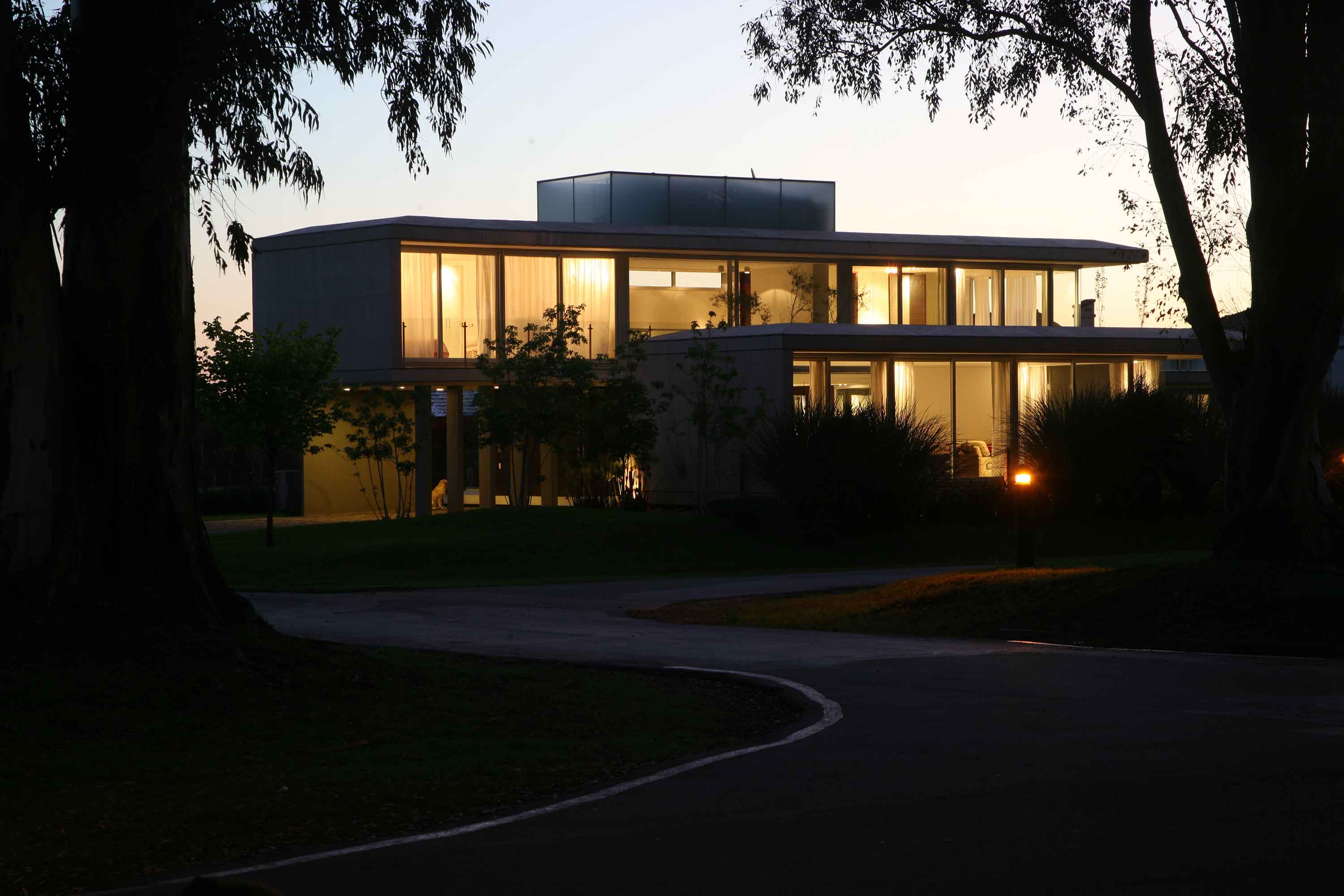 Ubicada en el barrio cerrado “Kentucky, club de campo”, la vivienda se desarrolló en un terreno en esquina sobre la arteria principal de especial atractivo por sus hileras de añosos eucaliptos.