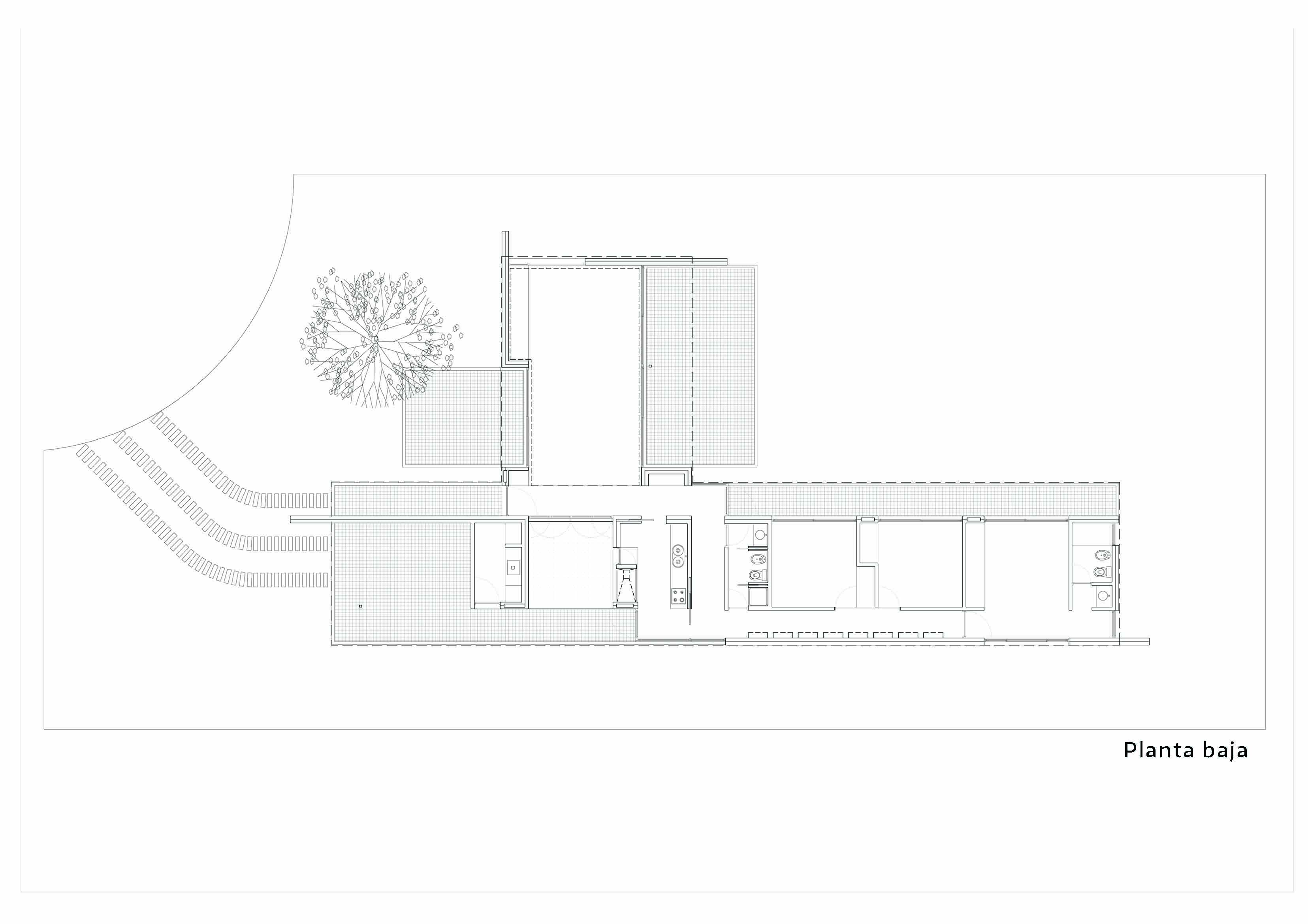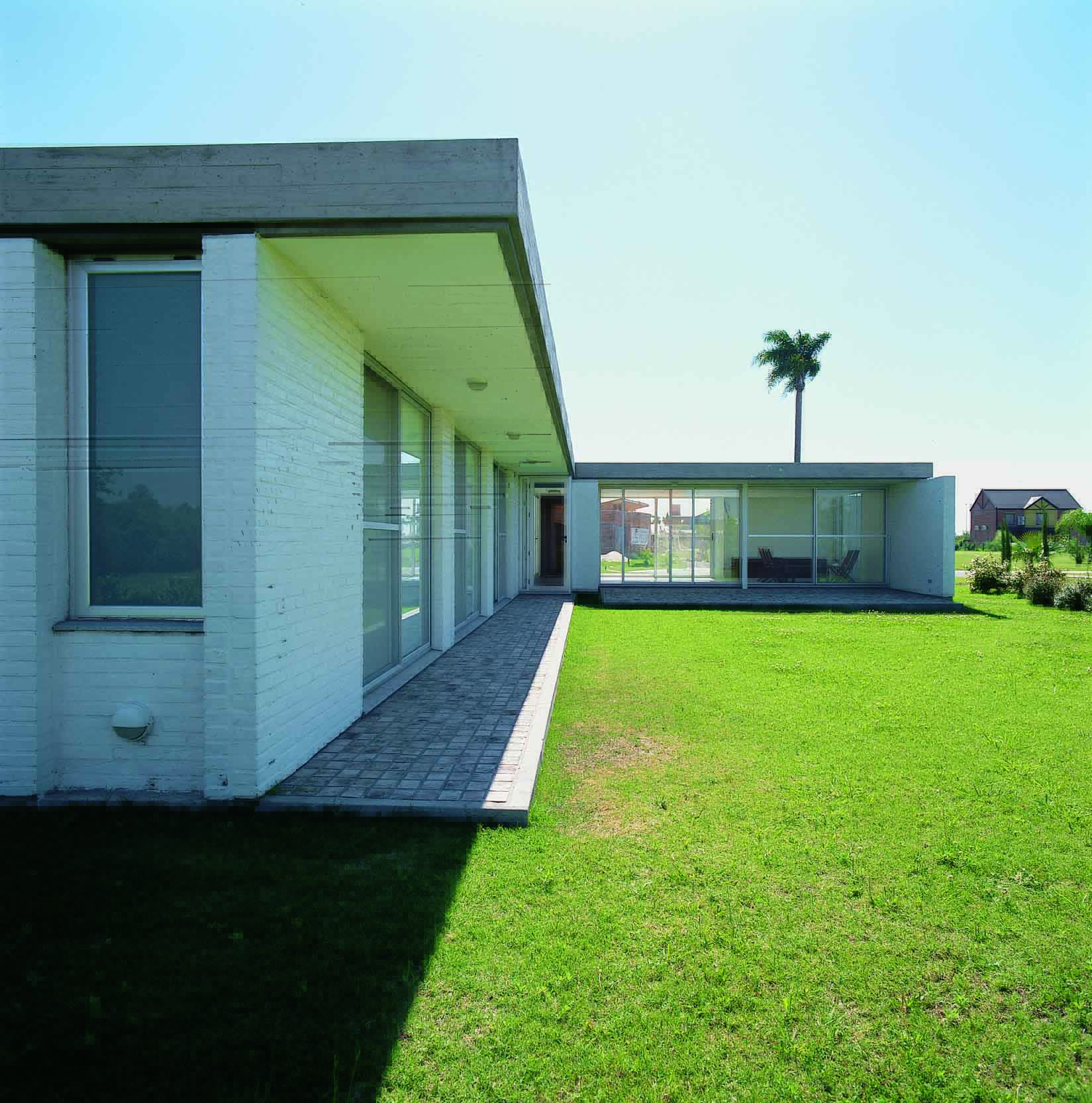 Mediante decisiones simples y rotundas, la casa se protege del sur y se abre al norte con la mayoría de los locales brindándose a esta mejor orientación. Un sistema dual de circulación establece un recorrido más público para unir los ambientes de reunión; y uno más restringido para el ala de dormitorios.