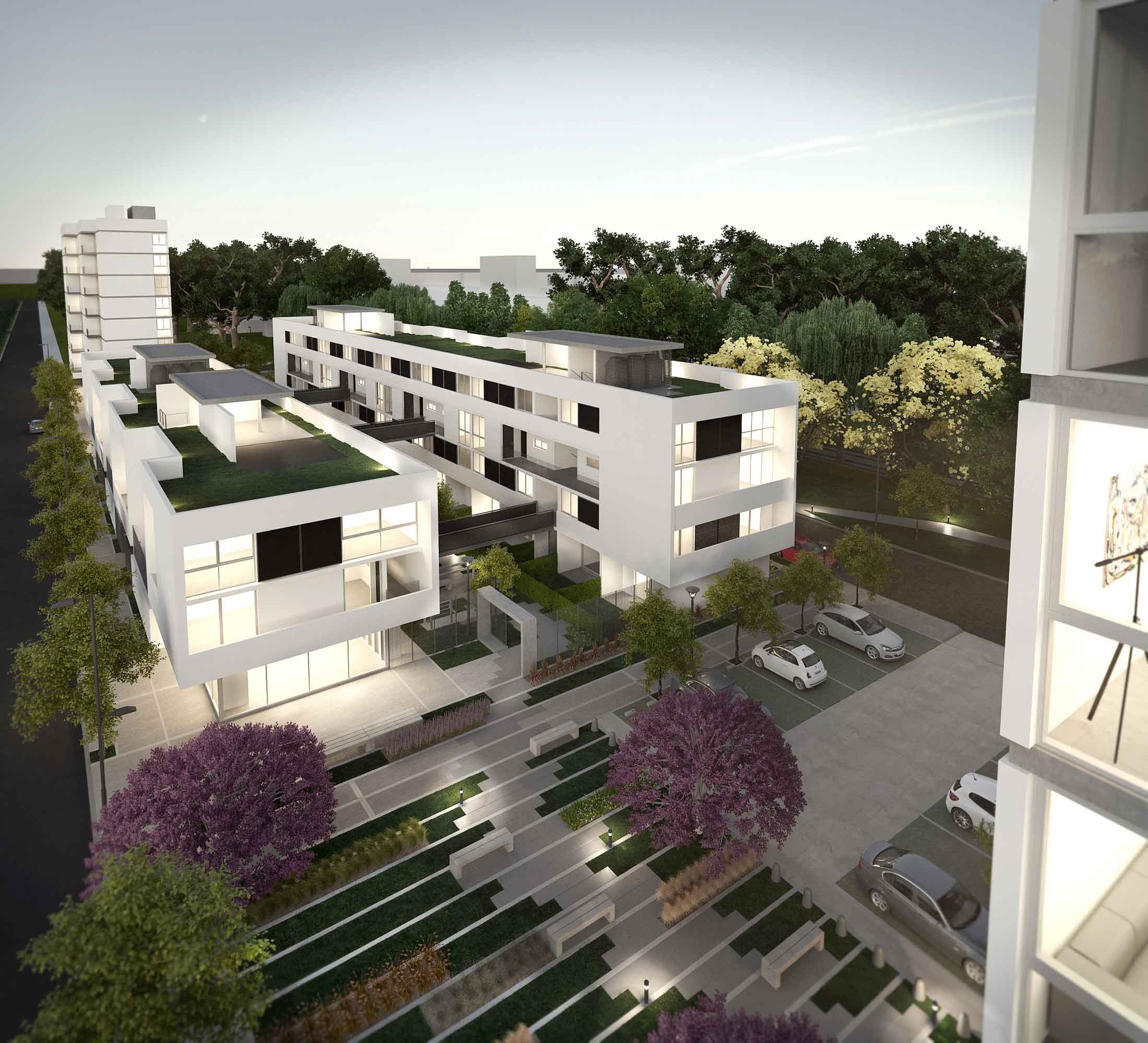 Incorporar un tratamiento de terraza verde a las azoteas accesibles de las dos tiras de viviendas multifamiliares con la finalidad de reducir el impacto ambiental producto de la incorporación de una nueva masa edilicia al espacio original del parque. Esta solución garantiza un mejoramiento de la calidad de habitar en los dúplex ubicados en las plantas más elevadas por su capacidad de aislación térmica a la radiación solar lo que supone una ventaja en el comportamiento medioambiental de la arquitectura (disminución del consumo energético, emisiones de oxígeno al medio ambiente, entre otras cualidades), además de ser un recurso apropiado para aumentar la calidad de vida de un espacio de expansión de uso colectivo como se le ha destinado a estas terrazas y por generar desde las viviendas en torres visuales que dialoguen con el verde tan prolifero del entorno natural cumpliendo con el objetivo de una verdadera arquitectura sostenible, que consiste, fundamentalmente en realizar una actividad constructiva conceptualmente integrada en la naturaleza; sin dejar de olvidarnos por ello, de aquellas acciones que no son tan perceptibles visualmente ya que son decisiones arquitectónicas básicas de proyecto y que se debieron acometer para conseguir esta pretendida integración: interpretación astuta de las orientaciones, disposición racional de los vanos, estudio de la envolvente arquitectónica (celosías, aleros, voladizos) y la elección consensuada de los materiales con las tecnologías locales más apropiadas para su utilización.