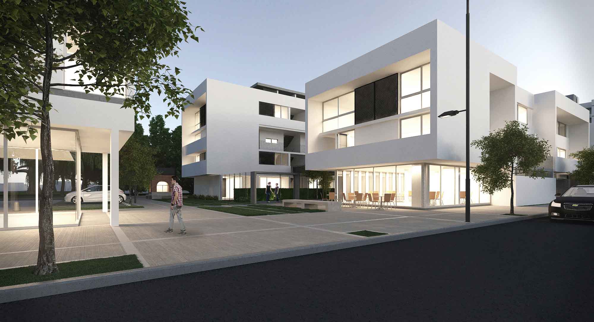 Evitar la repetición y monotonía de las fachadas exteriores mediante un lenguaje arquitectónico contemporáneo que interprete la diversidad como condicionante derivado de la mixtura programática propuesta por el plan de masas ideado por el programa Pro.Cre.Ar para el sector 2 del predio de Granadero Baigorria.