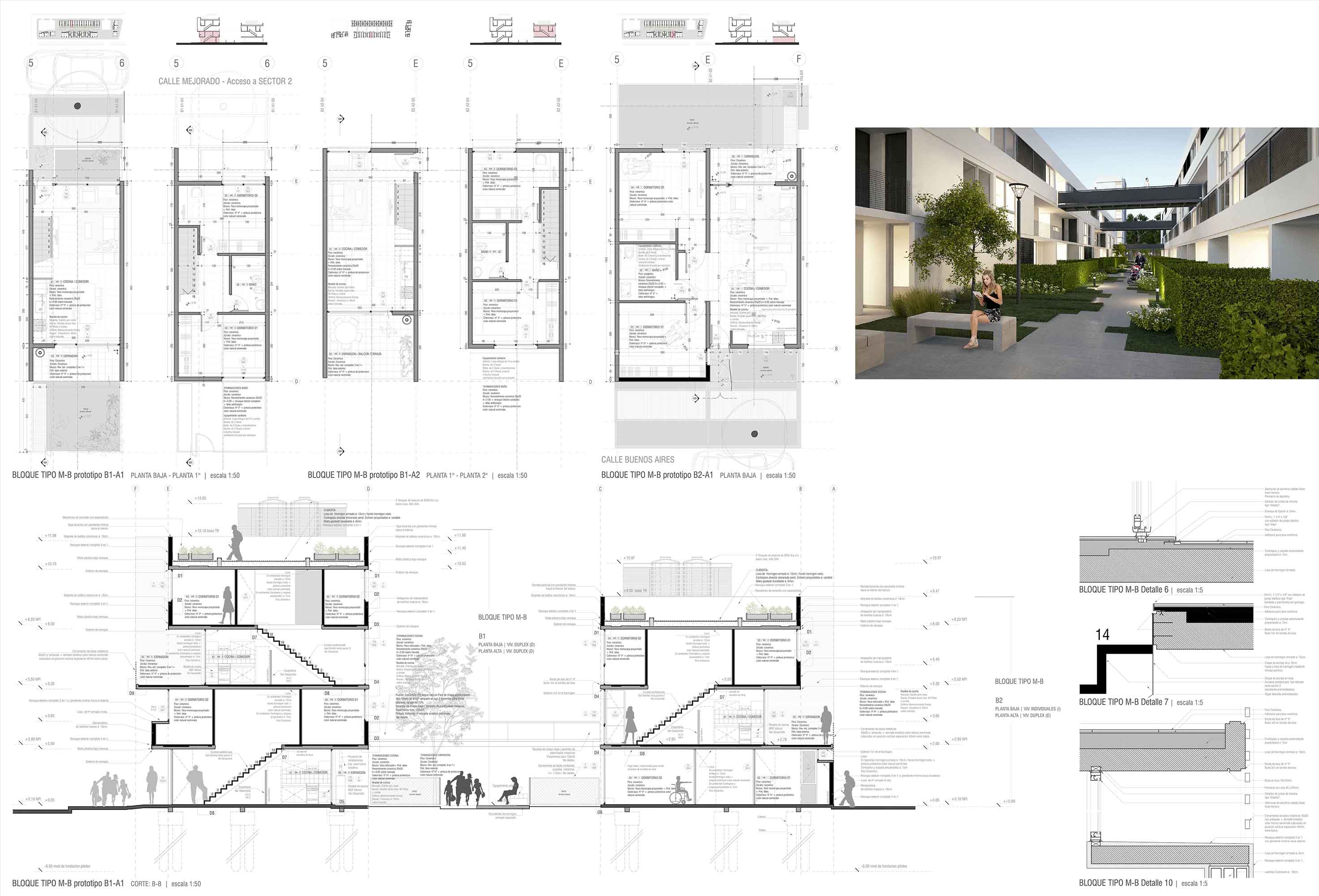 Todas estas consideraciones se llevaron a cabo contemplando la incorporación de vanos amplios con la consecuente diferenciación de los tipos de cerramiento de acuerdo a cada local y sus correspondientes orientaciones, teniendo en cuenta el ahorro de energía. Por ello, en los prototipos de dúplex con frente al Este las aberturas poseen mayor tamaño que las del frente Oeste o para la situación de las unidades en torres, los voladizos de los balcones fueron pensados como elementos de protección contra la incidencia del sol y la lluvia para las carpinterías más amplias del edificio; solo por enunciar algunas de las operaciones resultantes de las valoraciones presedentes.