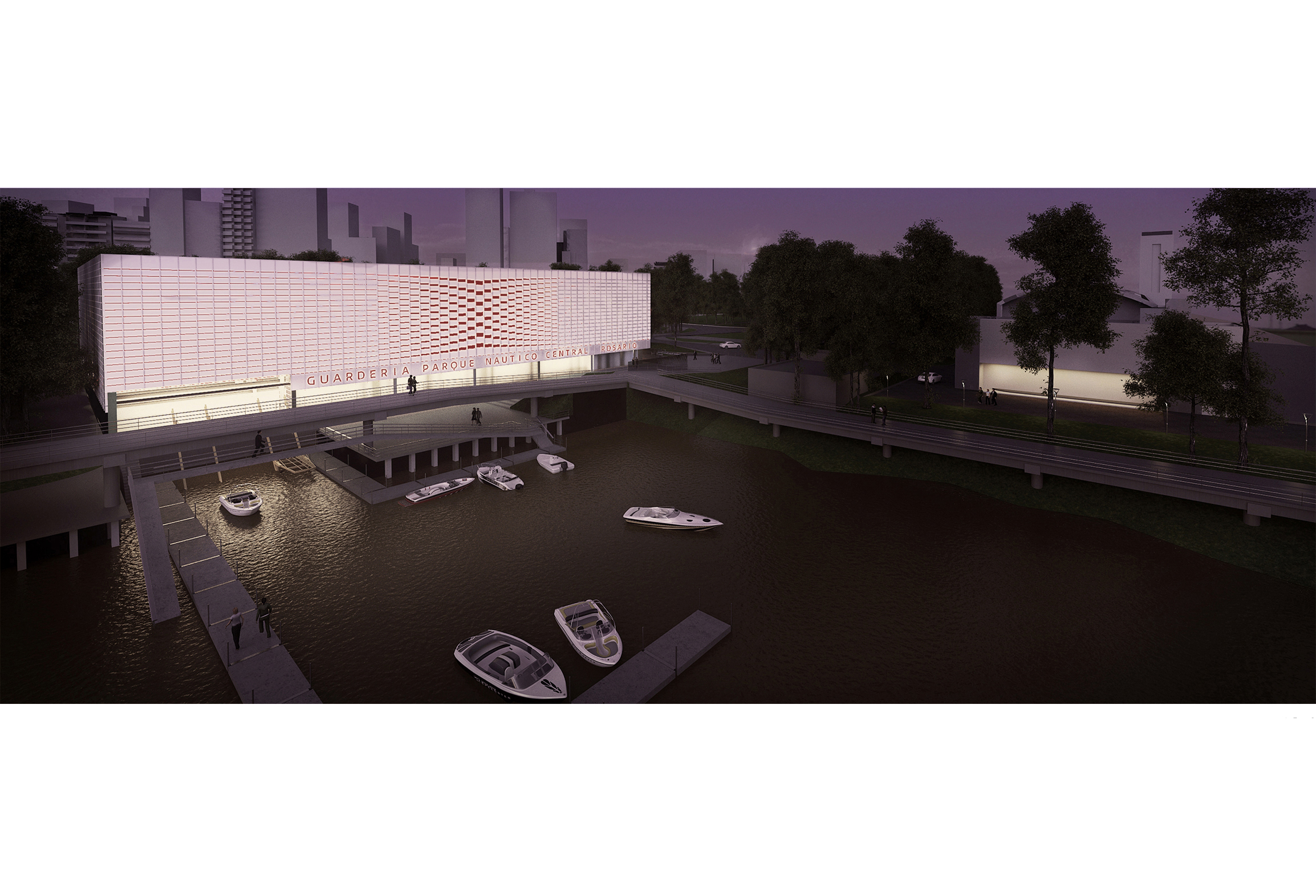 Ante este escenario, nuestra propuesta ha sido no sólo la de desarrollar una iniciativa para la ejecución, mantenimiento y explotación comercial de la Guardería Parque Náutico Central para la Ciudad de Rosario sino de resolver un sitio urbano integrando el proyecto de arquitectura con el paisaje mediante el reconocimiento del potencial de su emplazamiento como parte del mencionado sistema ribereño de parques que la Municipalidad está consolidando año tras año; y a su vez convertirse en el puntapié inicial del completamiento de continuidad del uso público frente al Paraná en su tramo sur para rematar en el proyecto del Puerto de la Música.