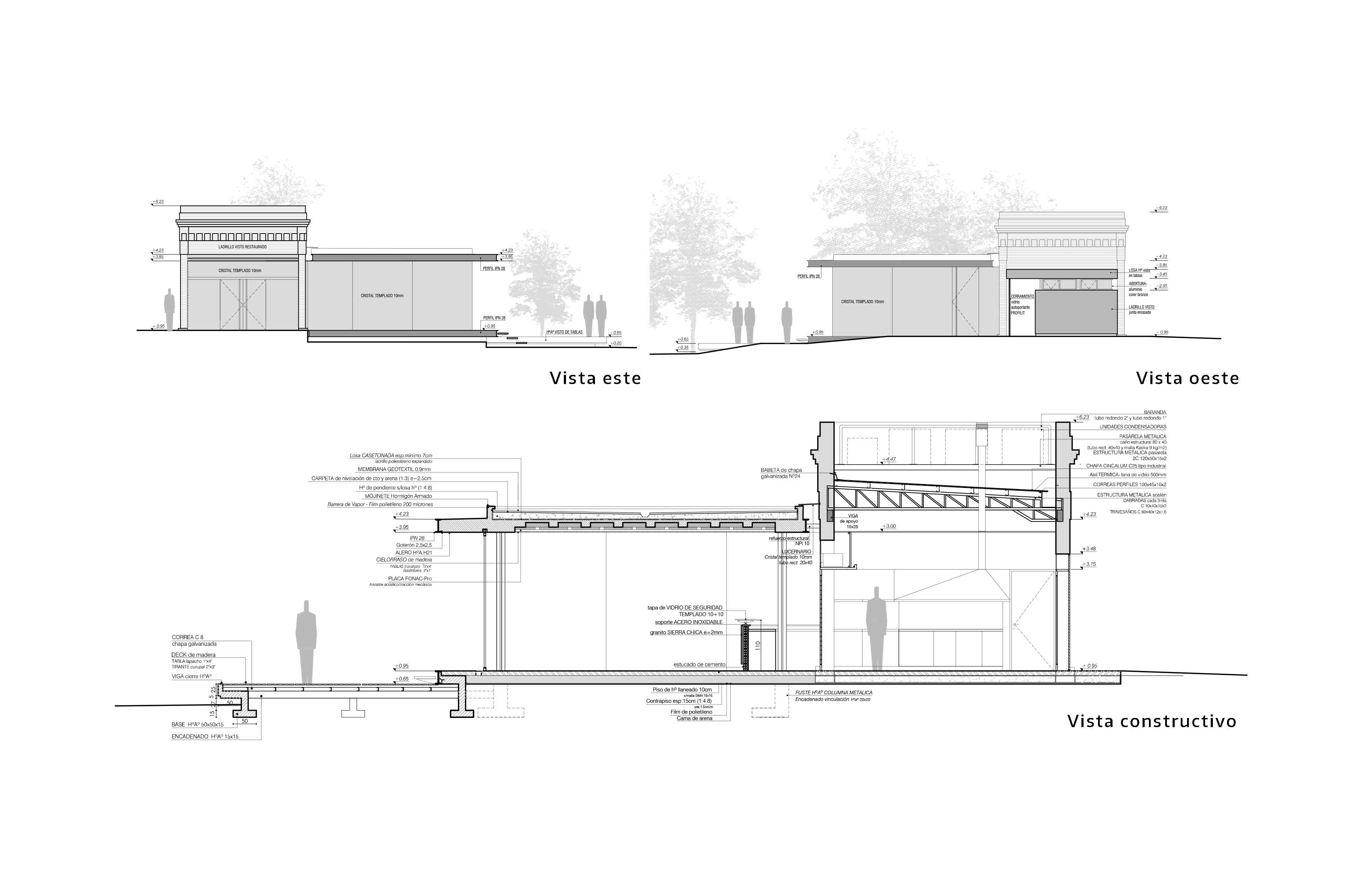 Como posibilidad de crecimiento, a futuro se propuso agrandar la capacidad de mesas en un piso elevado cubierto sobre el área del pabellón existente.